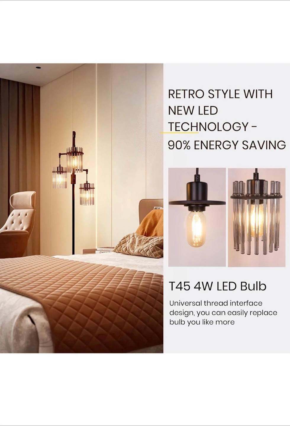 This retro style floor lamp features new LED technology for 90% energy saving. It has a dimmable function, allowing you to easily set up the lights to suit your needs with 0-100% stepless dimming. The lamp uses a T45 4W LED bulb with a universal thread interface design, so you can easily replace the bulb with one you like