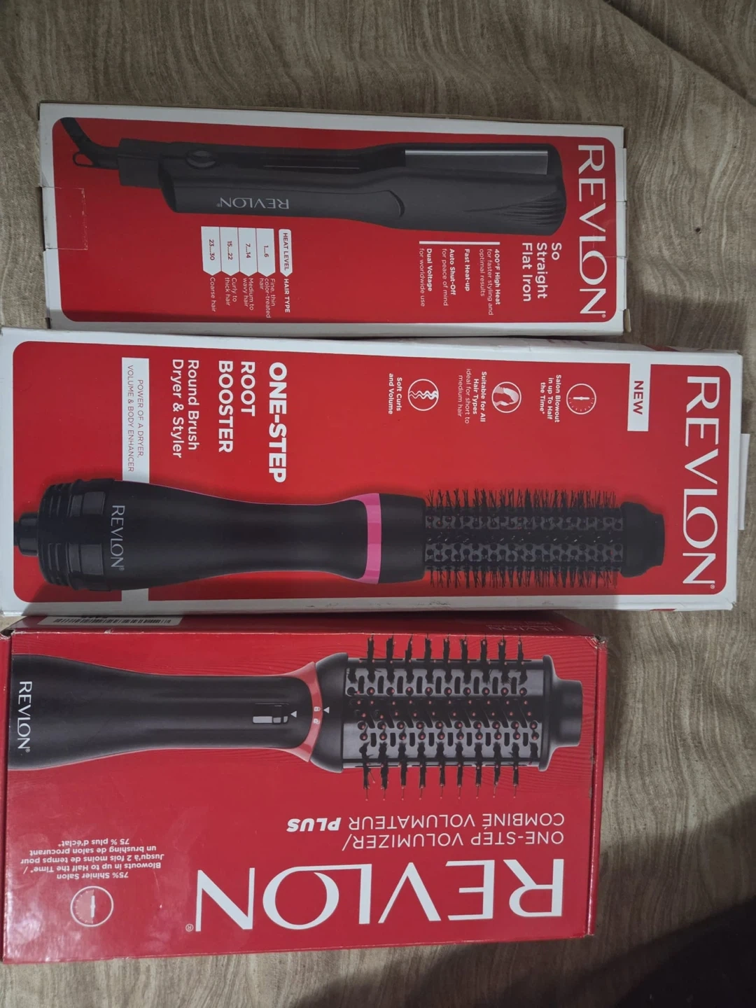 Selling a brand new Revlon One-Step volumizer and hair dryer set! This set includes the Root Booster Round Brush Dryer & Styler and the One-Step Volumizer PLUS. Get salon-quality blowouts in up to half the time with these amazing hair tools