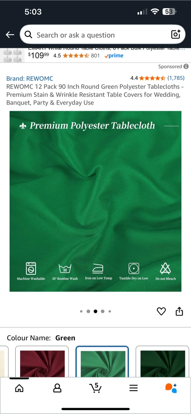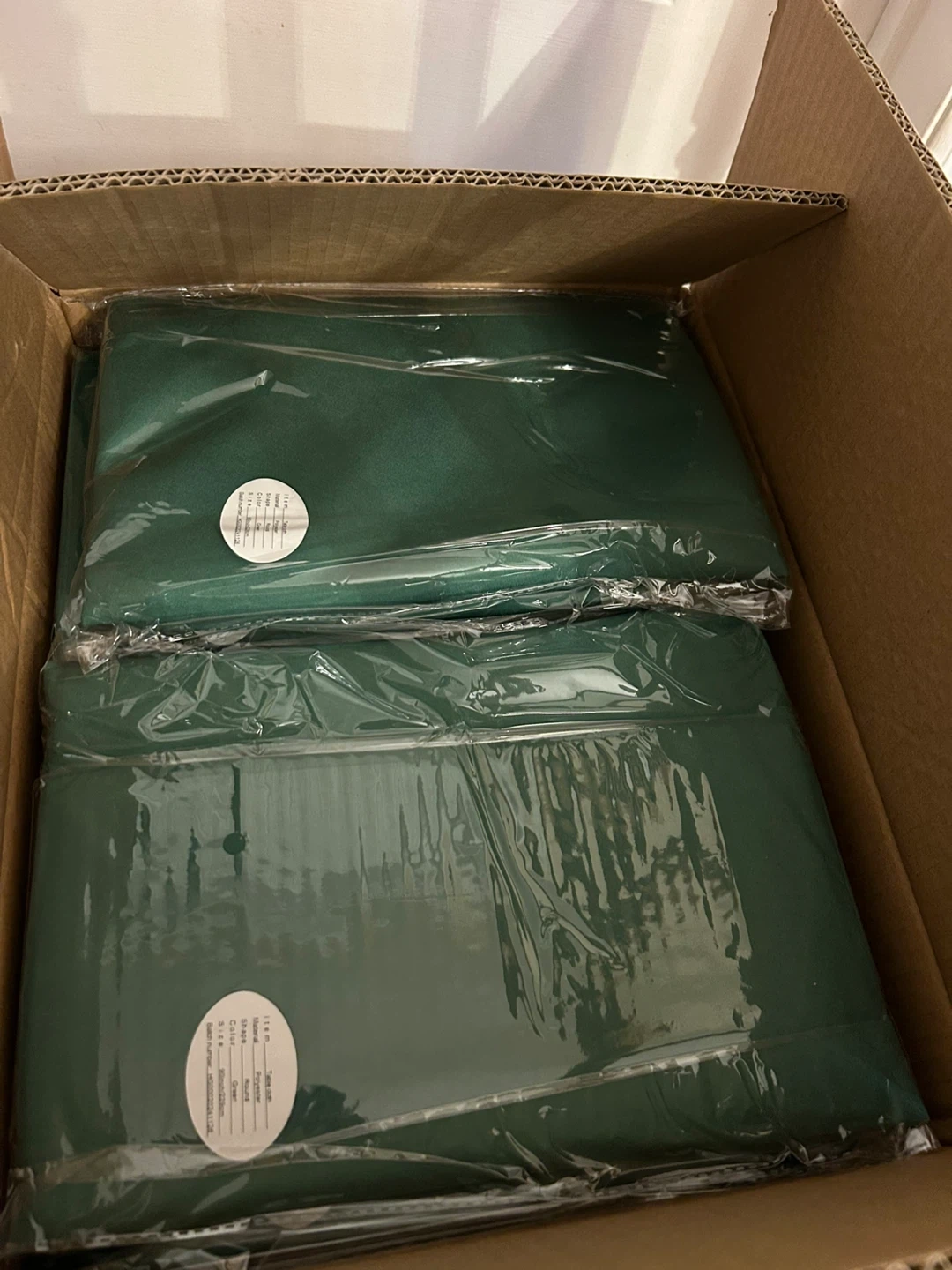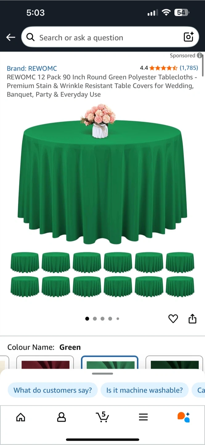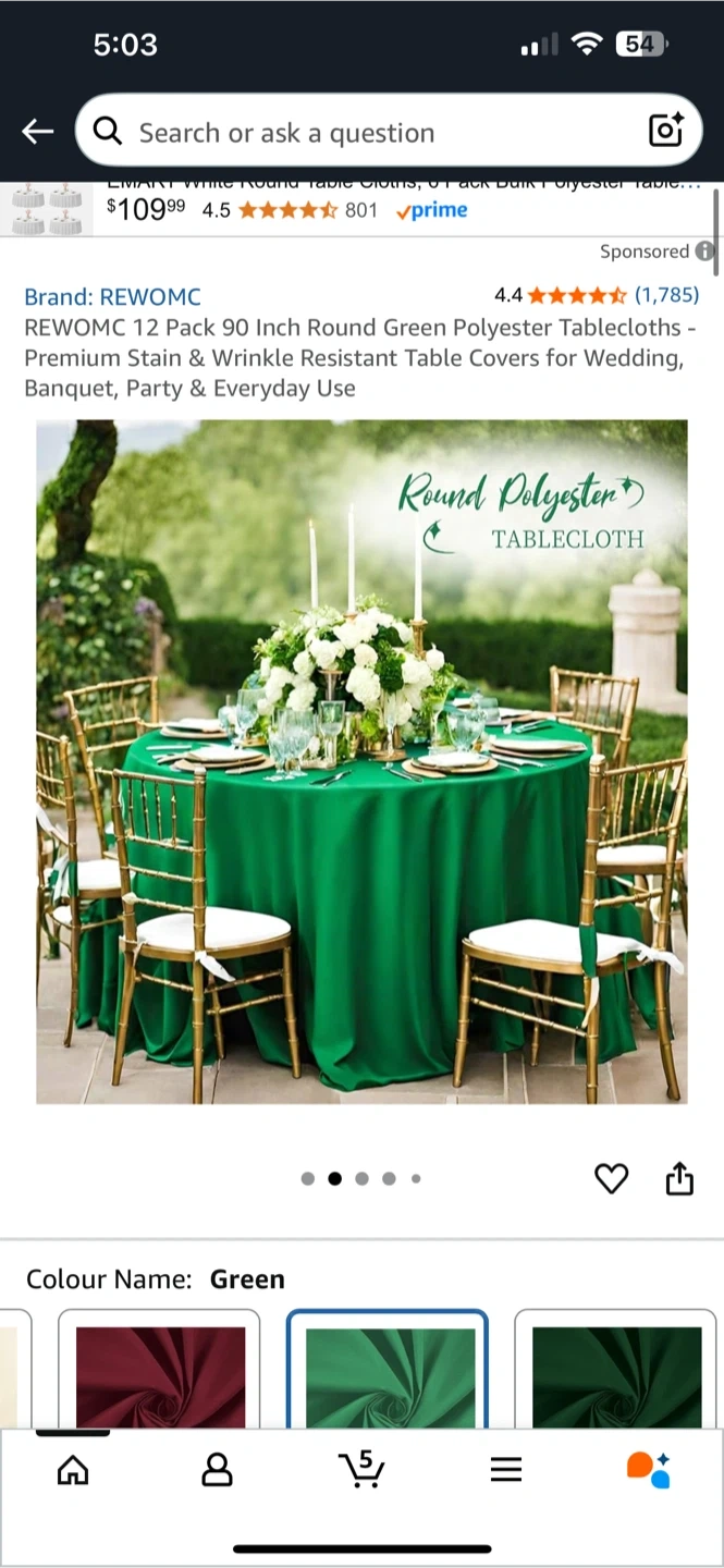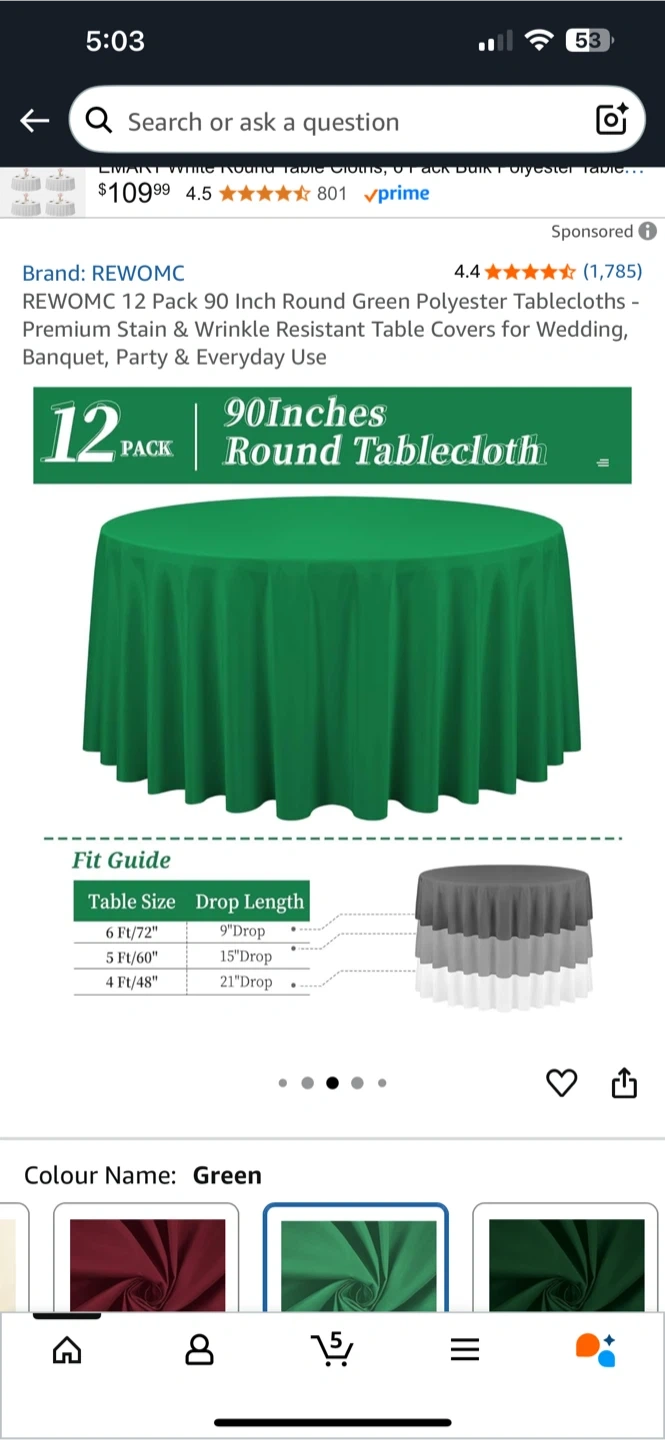 Get ready to host with this set of 12 REWOMC 90-inch round tablecloths! They're a vibrant green and made of premium stain & wrinkle-resistant polyester. Perfect for weddings, banquets, parties, or everyday use! Brand new in box unused. Opened box to show in photo what it looks like
