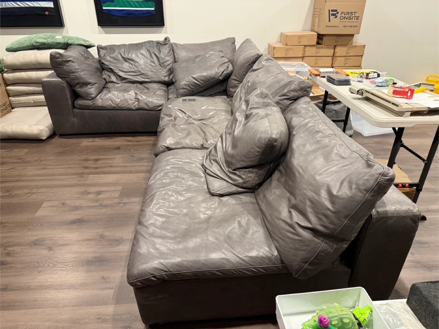 Selling a comfy RH Cloud grey leather module sofa. It's in good condition and ready for a new home! Perfect for a living room or den, this sofa offers plenty of seating space. The leather is soft and supple, making it a great place to relax after a long day. Please message with any questions! Pick up only, no delivery.