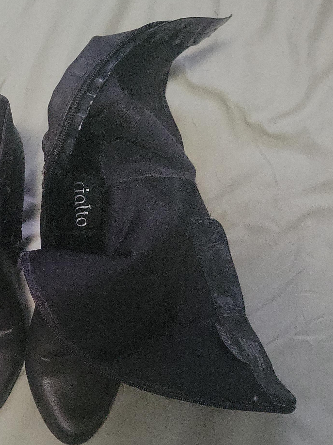 Selling a pair of black boots from Rialto! They are in great condition and ready for a new home! They have a velvety material on the inside. Will not be able to meet send me shipping address. no shipping fees. FREE SHIPPING