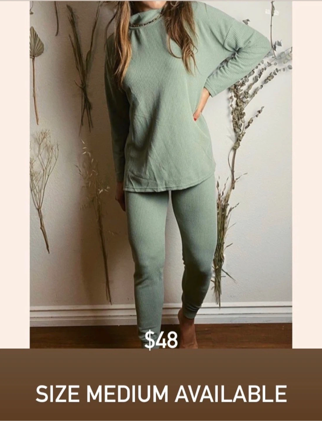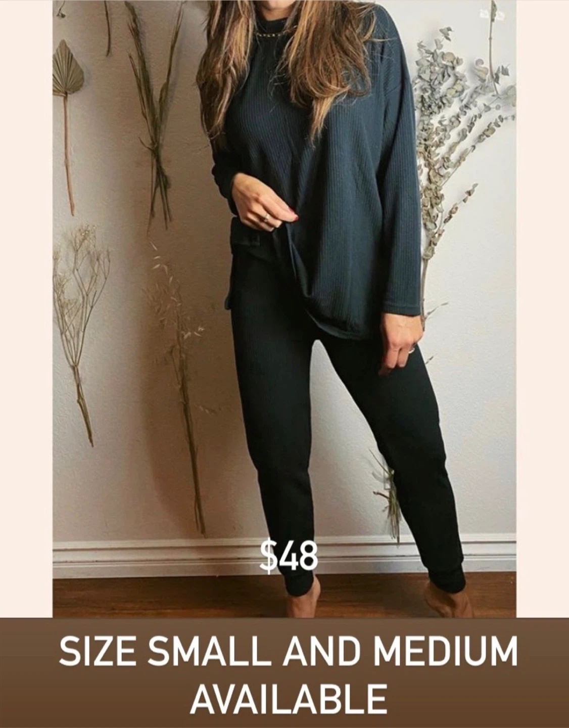 Cozy ribbed knit lounge set available in size small and medium! These sets are super comfy and perfect for lounging around the house. Available in multiple colours!