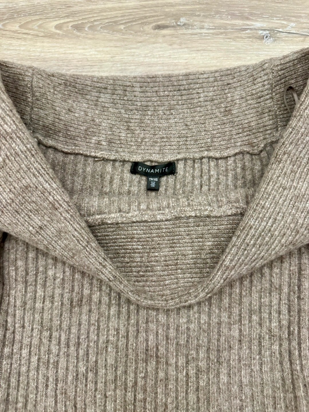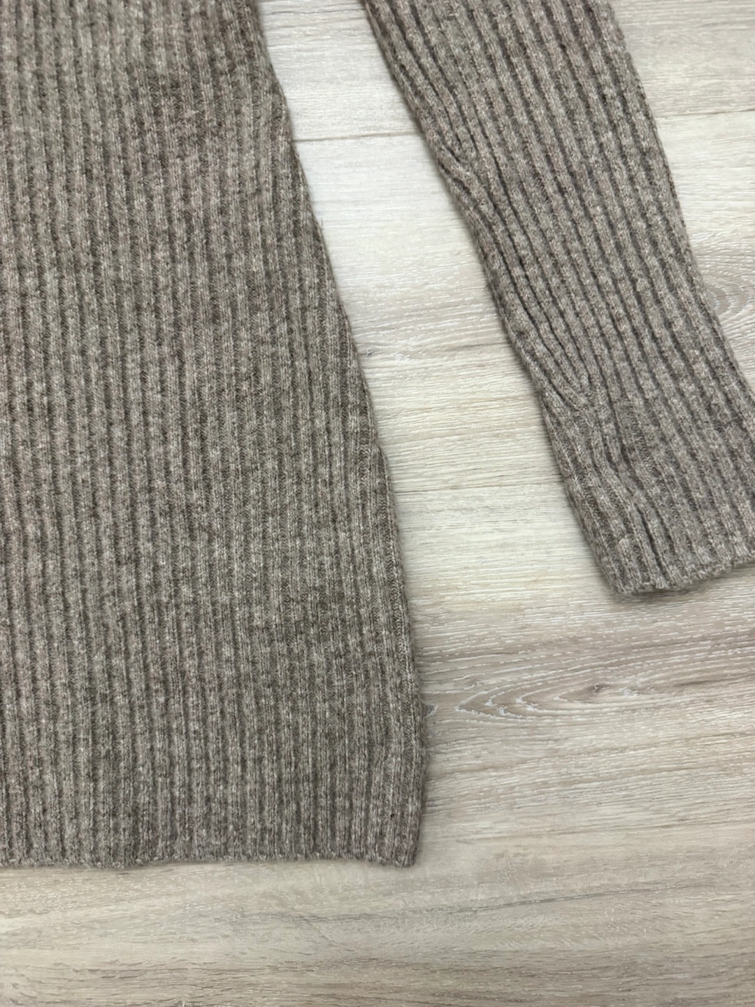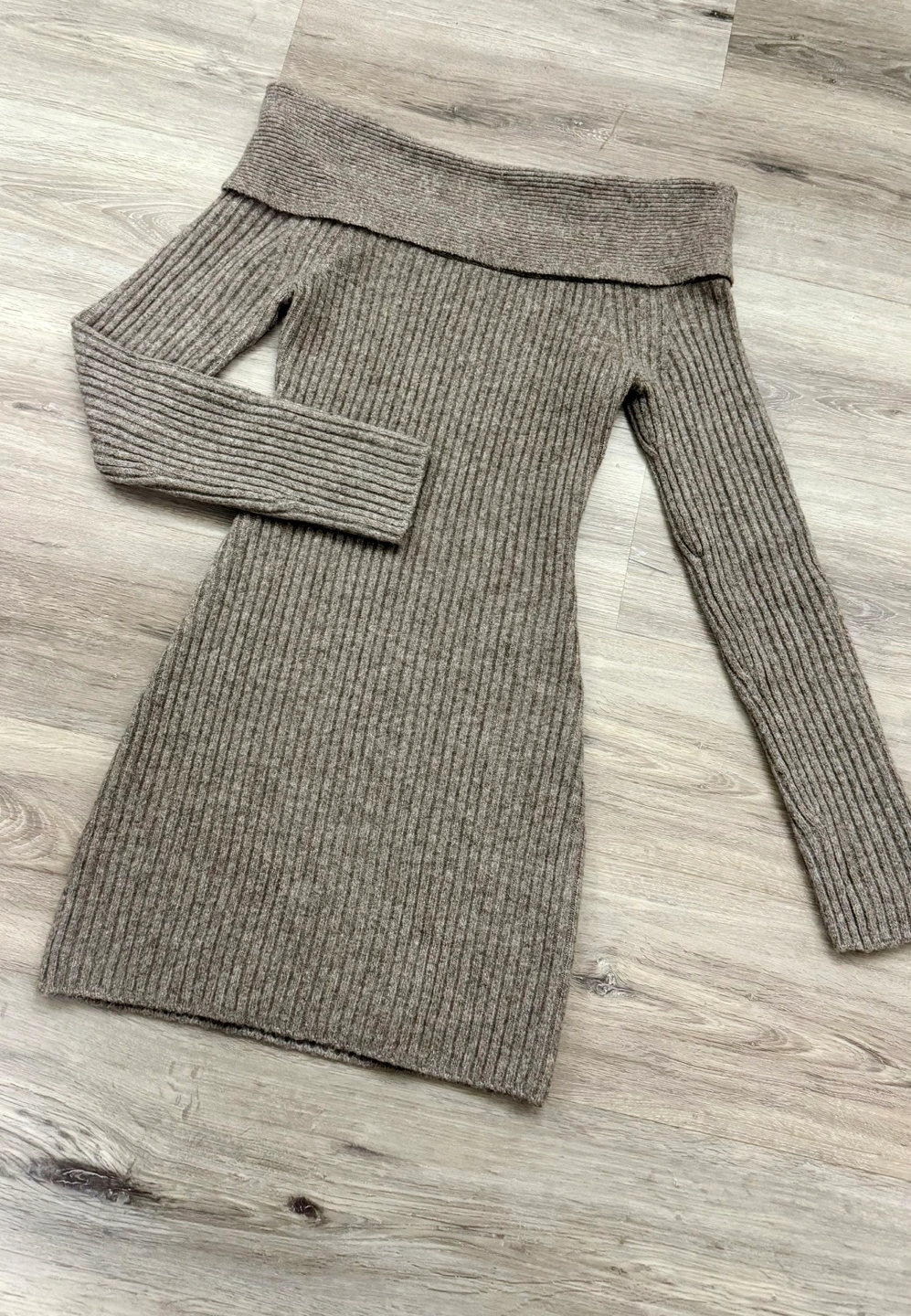 Beautiful taupe-coloured off-the-shoulder mini dress. Long sleeves. Ribbed knit stretch fabric. Perfect for a night out or a casual look. Size XS. In perfect condition - only worn once.
