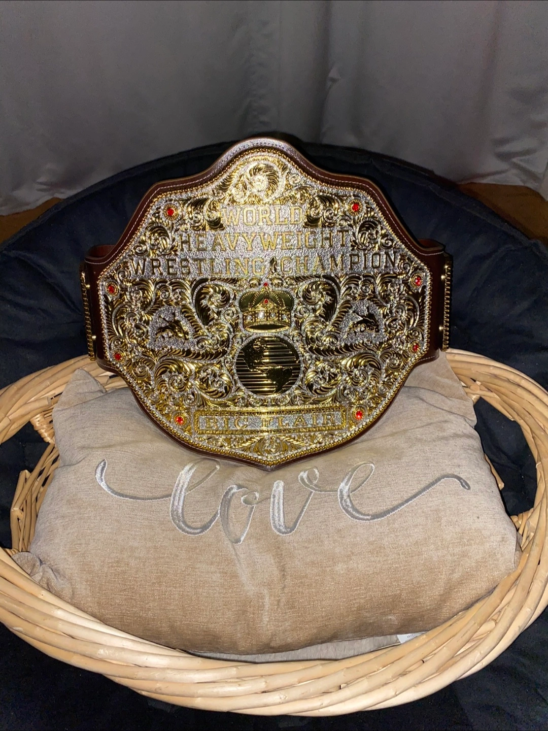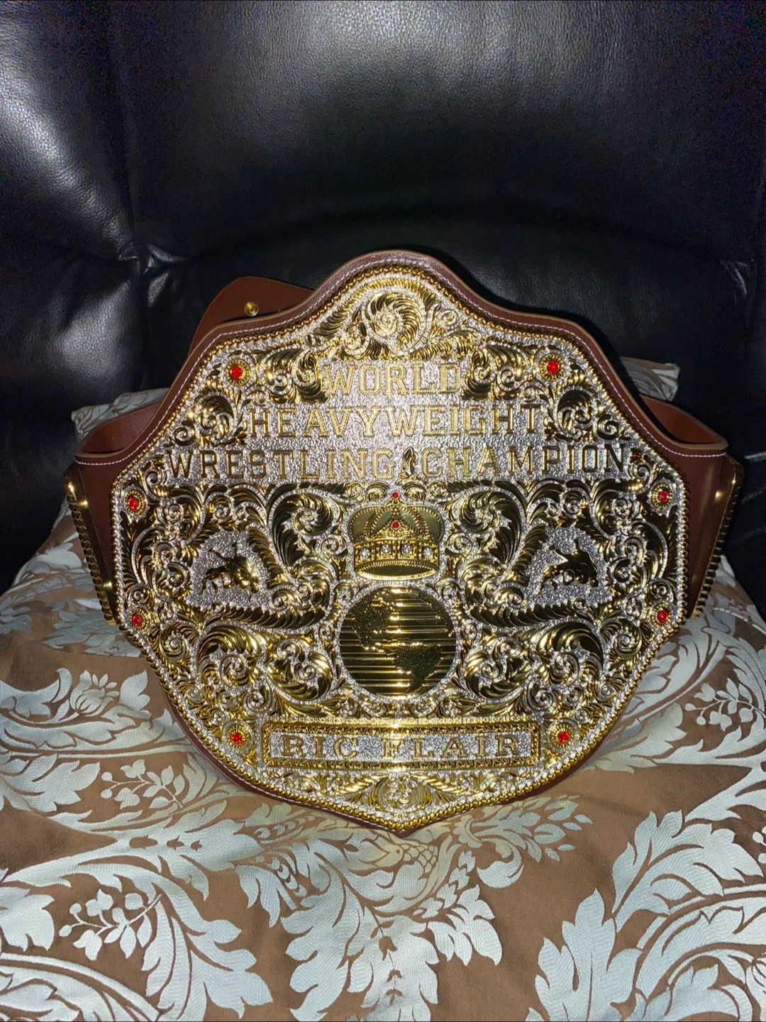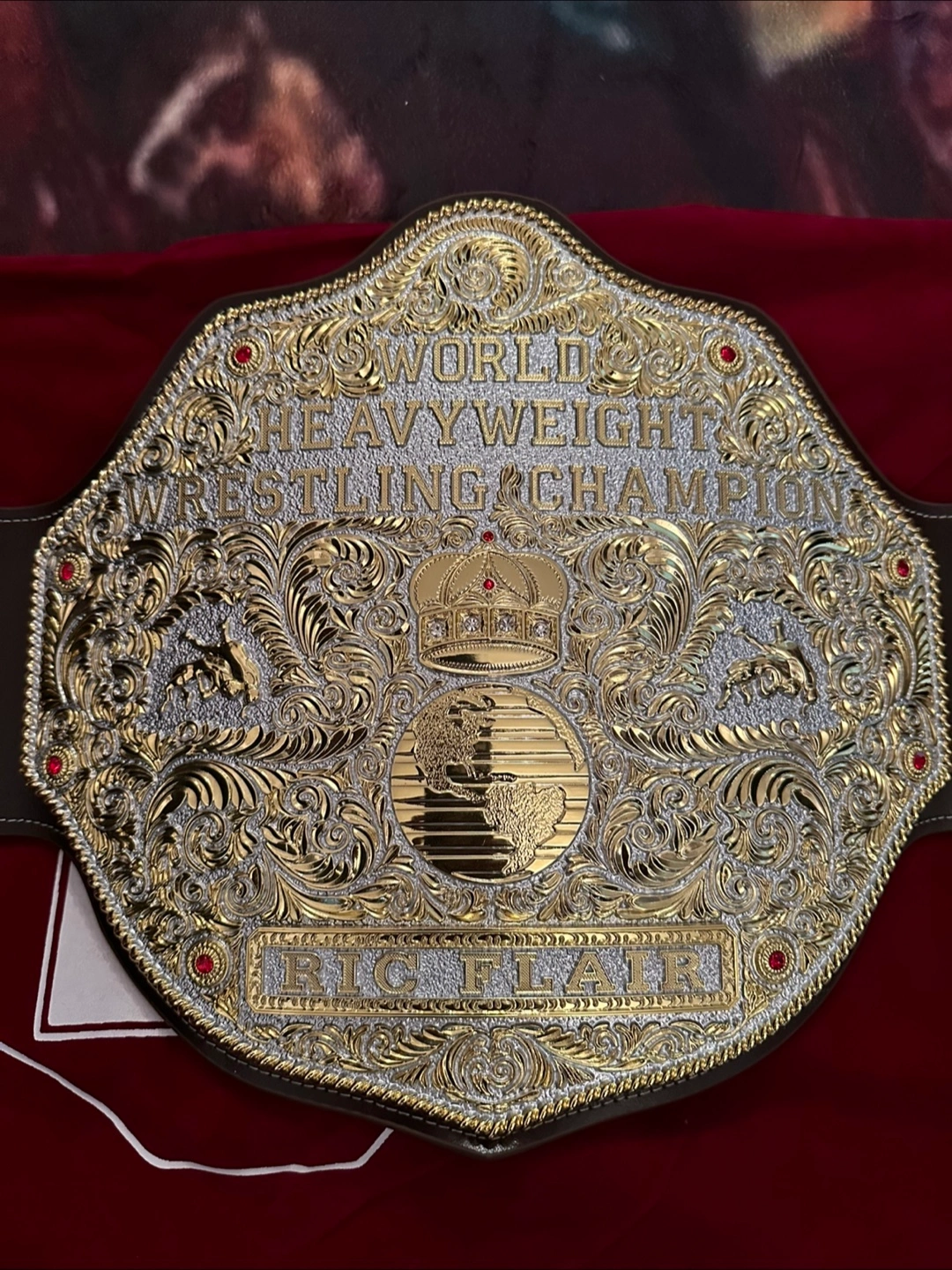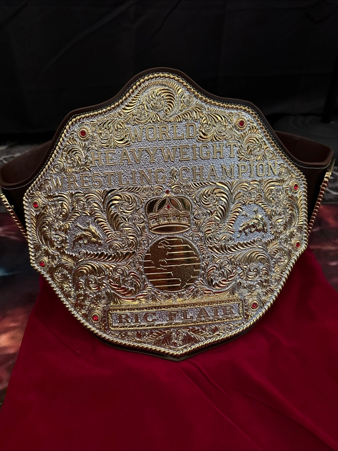 Here's a Ric Flair World Heavyweight Wrestling Champion belt. It's in great shape and would be a great addition to any wrestling fan's collection!