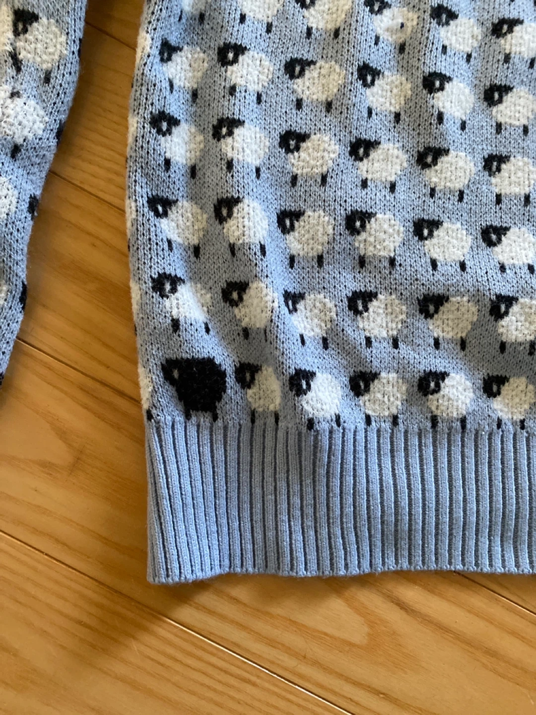 XS wool sweater from Ricki’s in a light blue colour with an adorable sheep design! On the front and back, one black sheep hides among the white. It's in great condition and ready to keep you warm and stylish ☺️