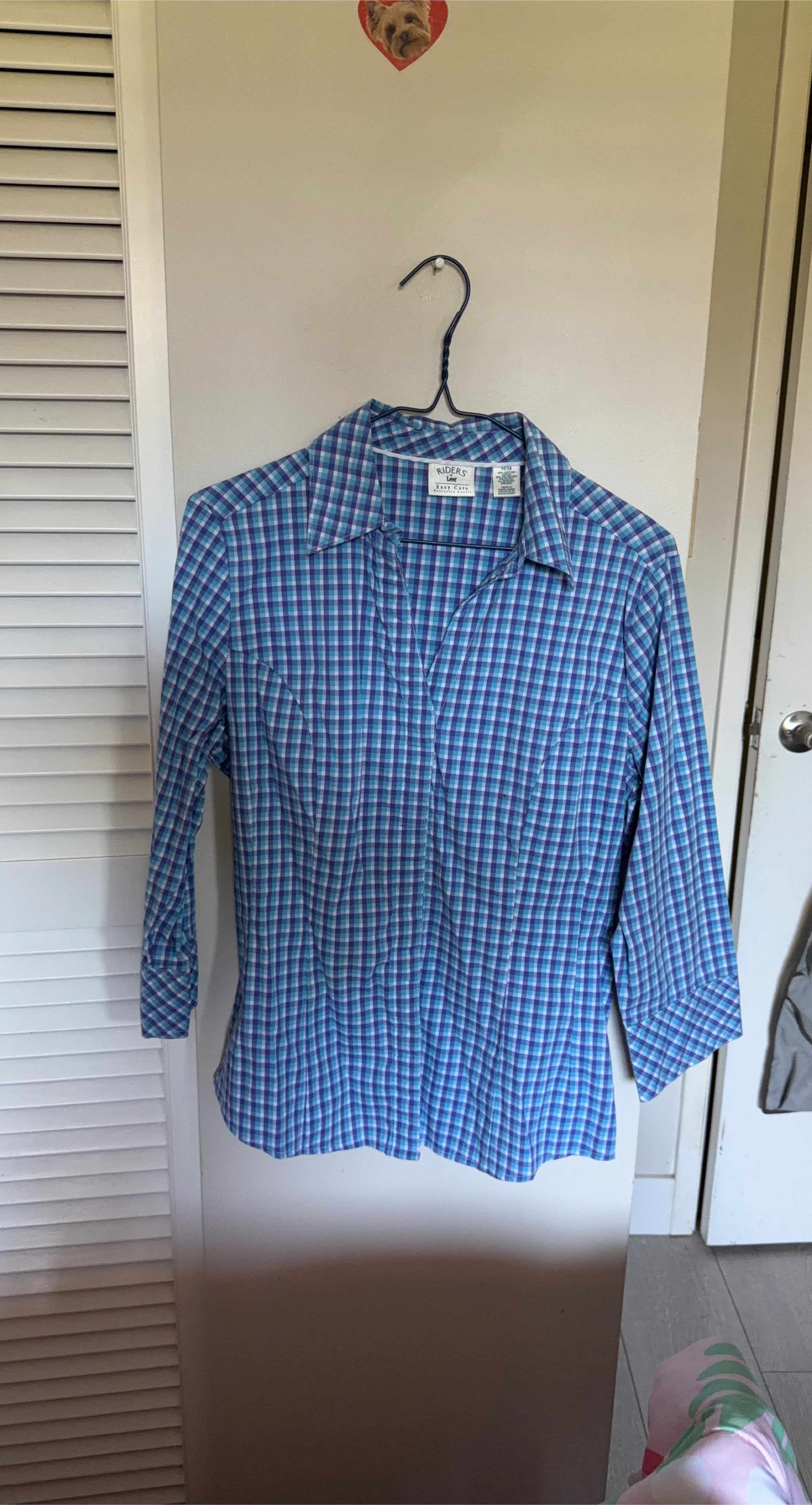 Cute Riders by Lee button down shirt in a blue and purple plaid pattern. It's in great condition and ready for a new home! Size is Medium.