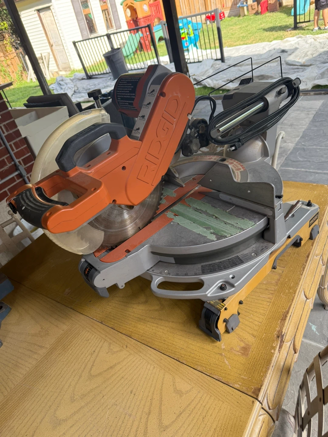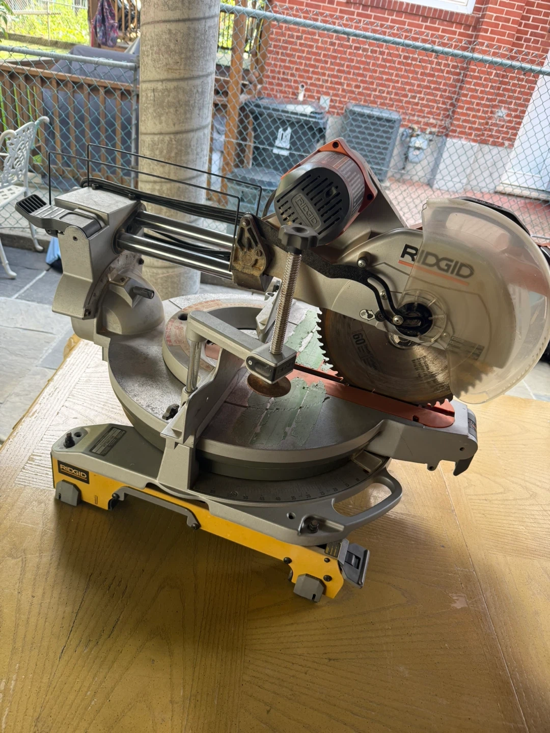 Selling a 12 inch Ridgid miter saw with stand in used condition.