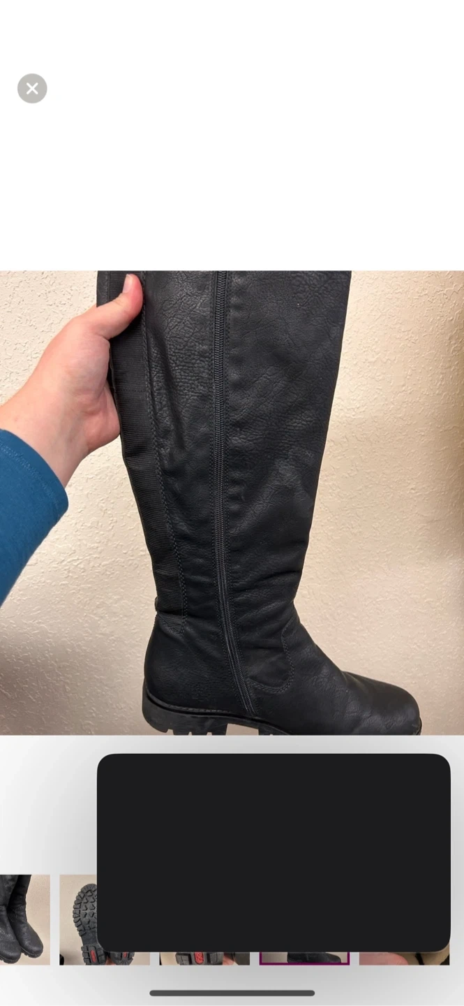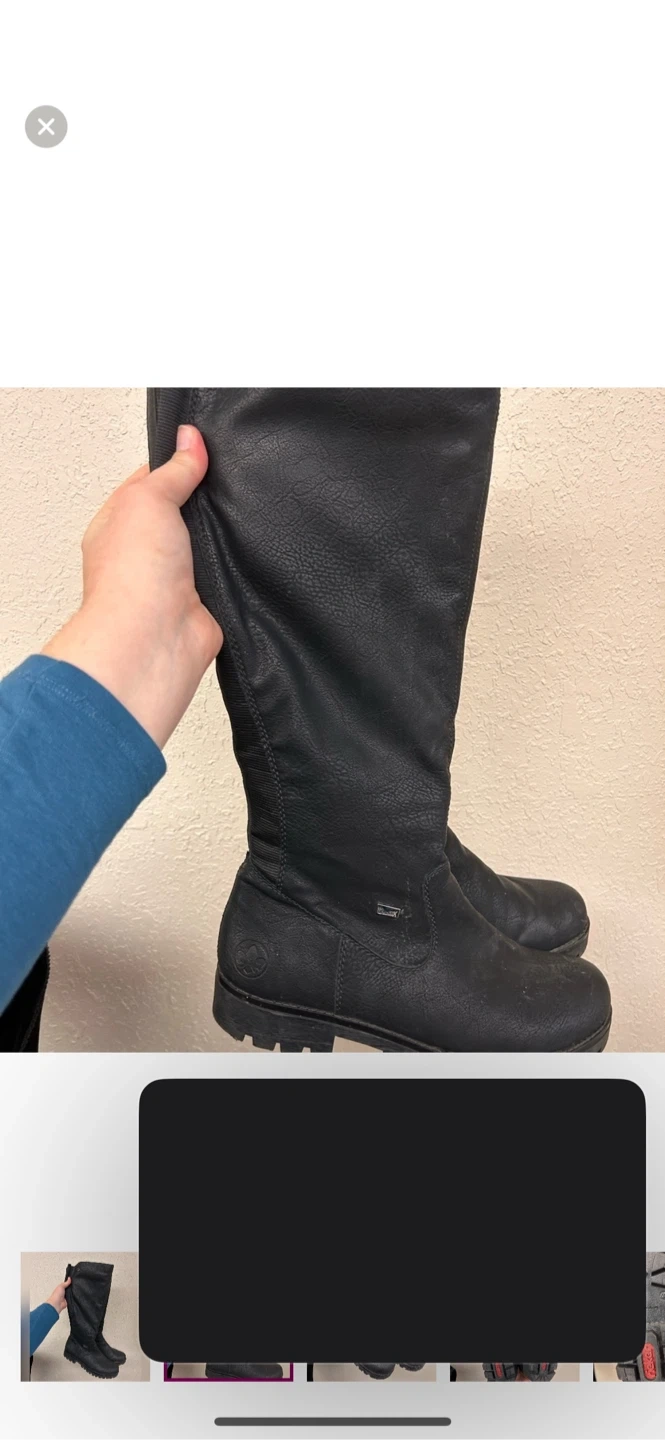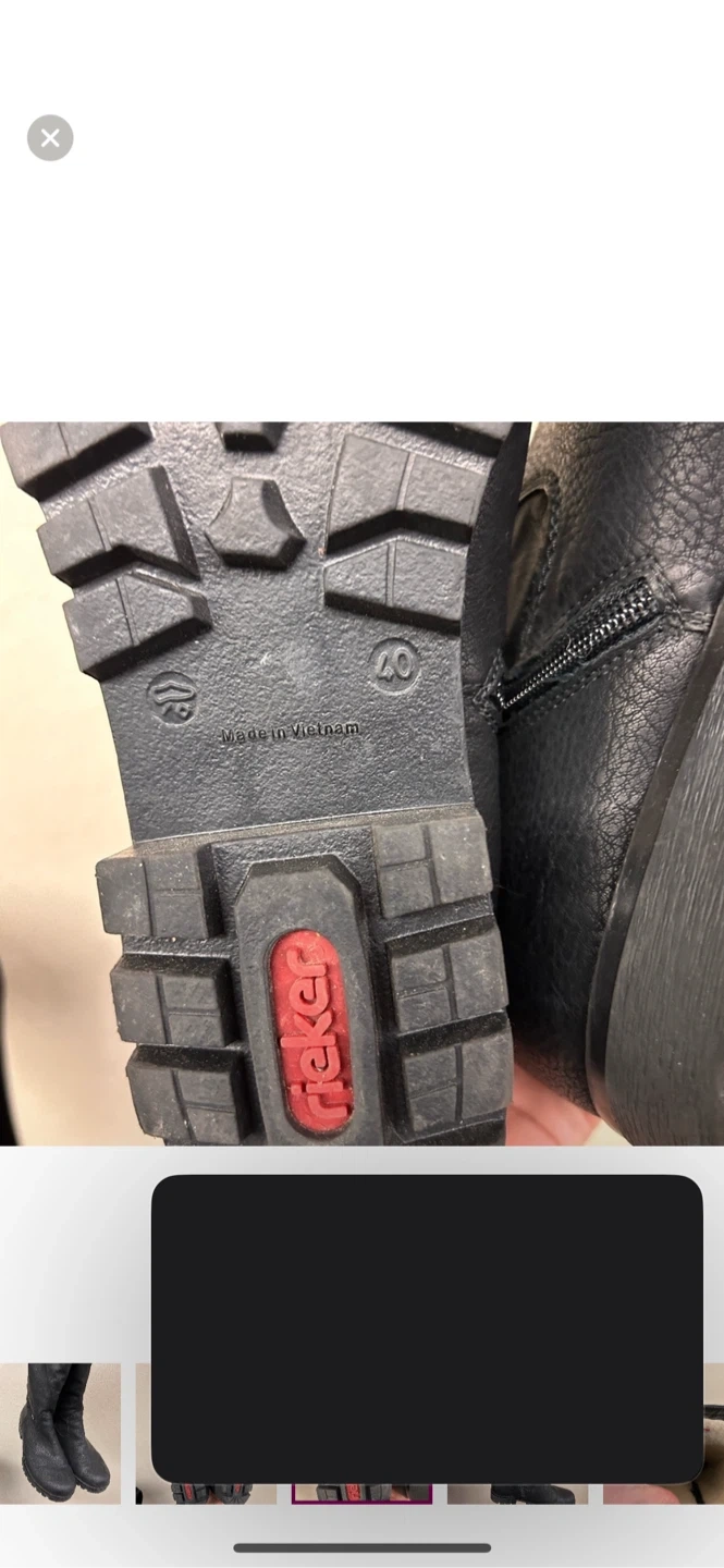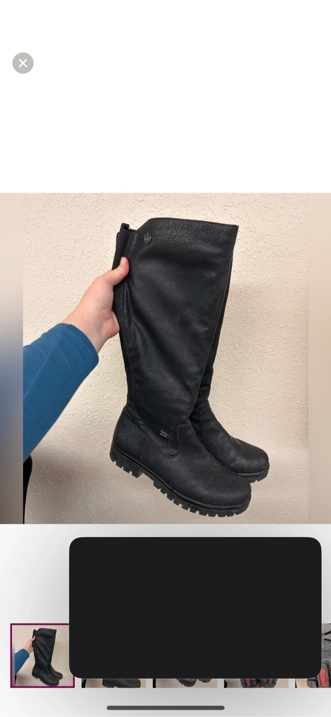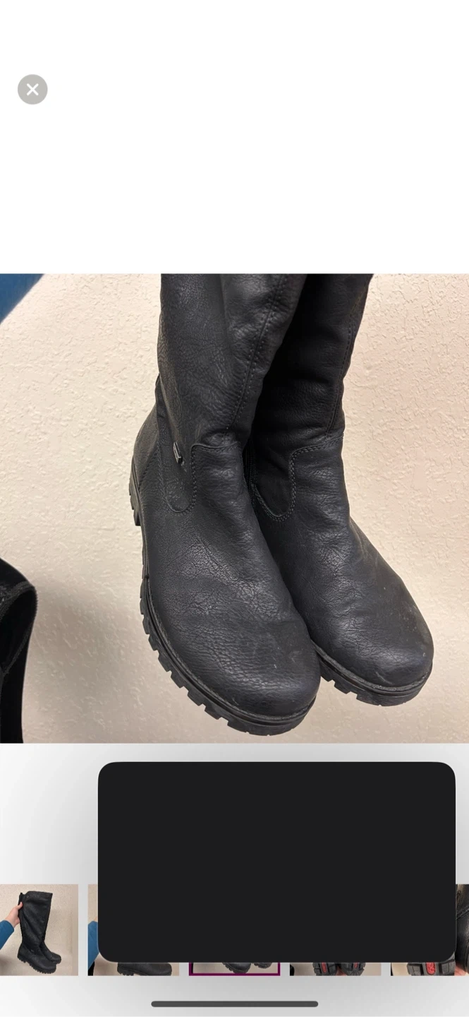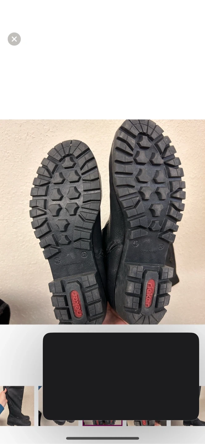 Rieker brand. High calf boots. Inner zipper. Sherpa lined. Size eu 40, fit more like a us 10. Black in colour. Brand new condition, soles look brand new like they’ve never been worn $50 Pickup between kincardine & ripley or I can arrange delivery in port Elgin-Owen sound, walkerton-Durham, wingham-listowel-kw/cambridge, goderich-bayfield, Woodstock & Arthur-Orangeville-Newmarket-Lindsay-Peterborough AREAS.