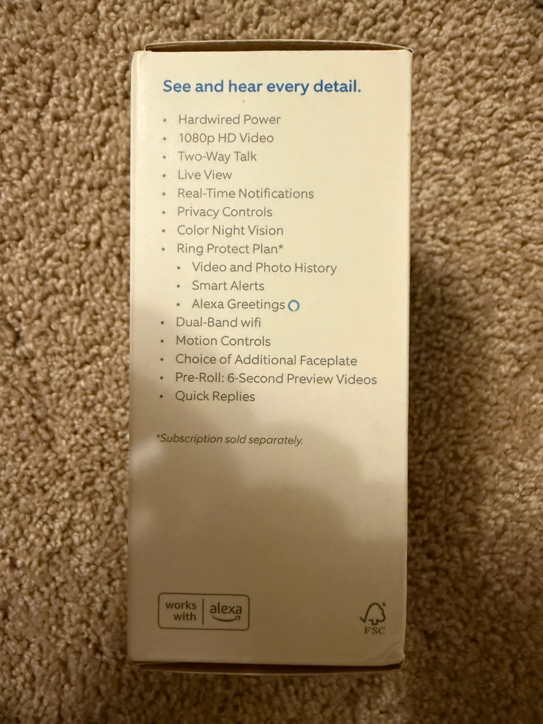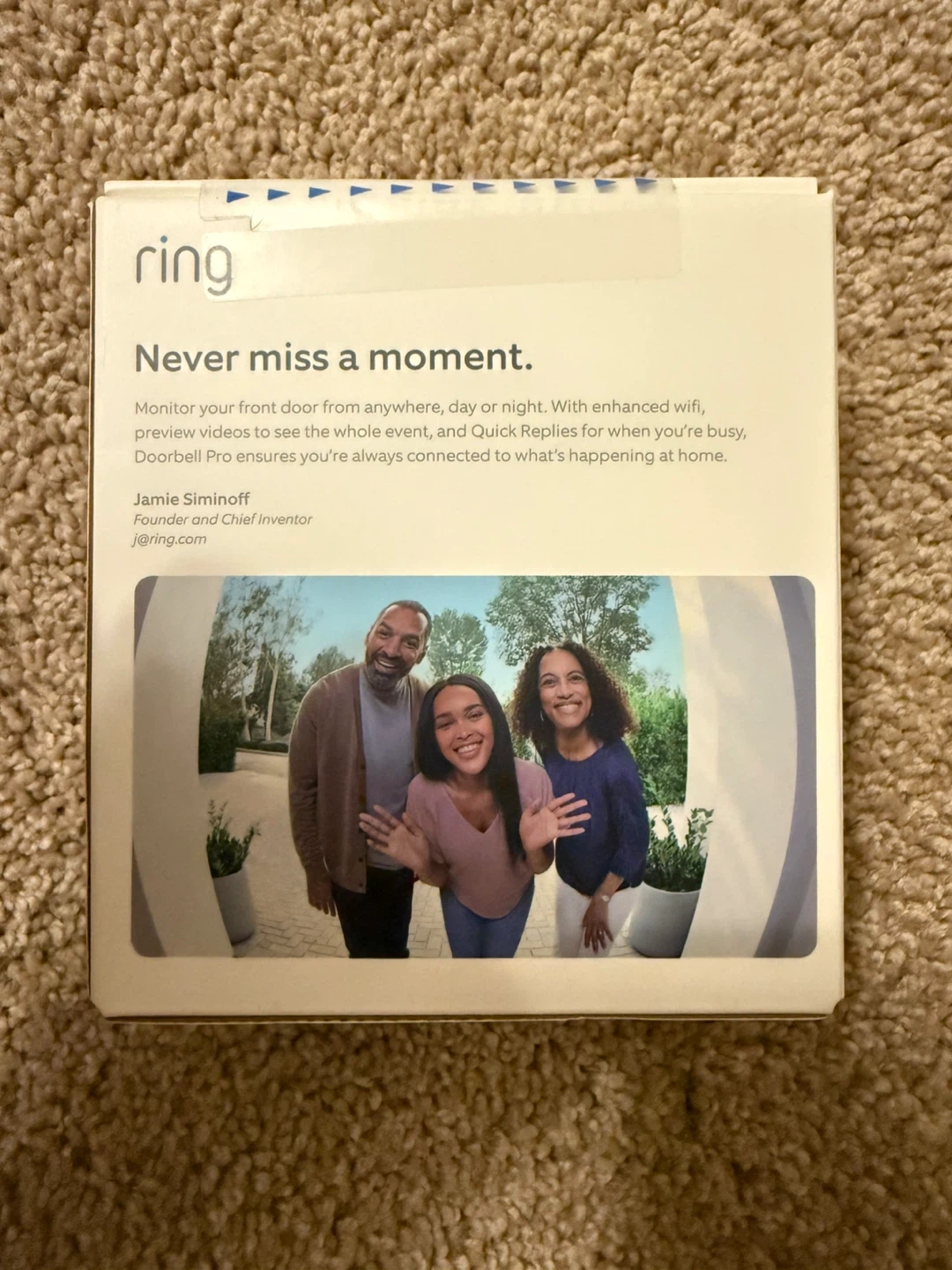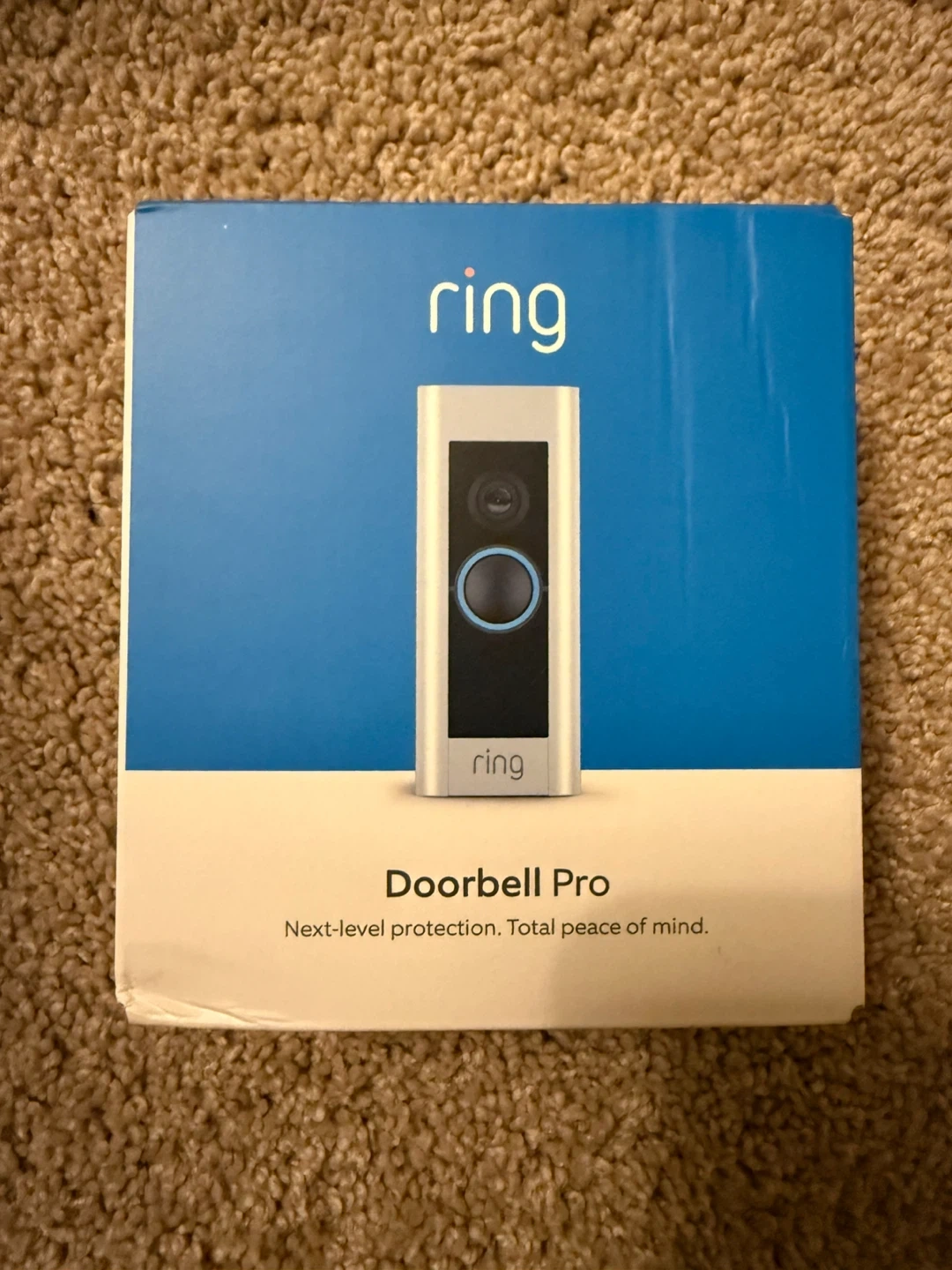 Selling a Ring Doorbell Pro in its original box! It offers next-level protection and total peace of mind. Key features include: - Hardwired Power - 1080p HD Video - Two-Way Talk - Live View - Real-Time Notifications - Color Night Vision - Dual-Band wifi - Motion Controls It also works with Alexa for added convenience