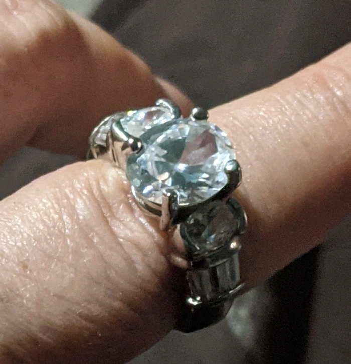 Selling a ring with a large, clear stone. It's in great condition and ready for a new home On the band it says 925