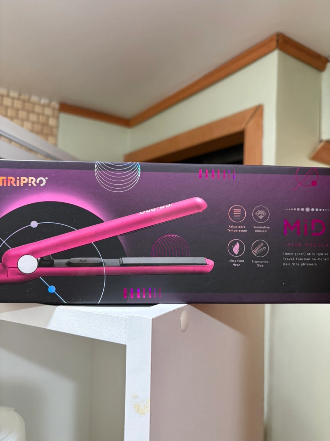 Brand new never used A beautiful pink hair straightener in its original packaging. Perfect for styling your hair, ensuring a smooth, and sleek look for any occasion.