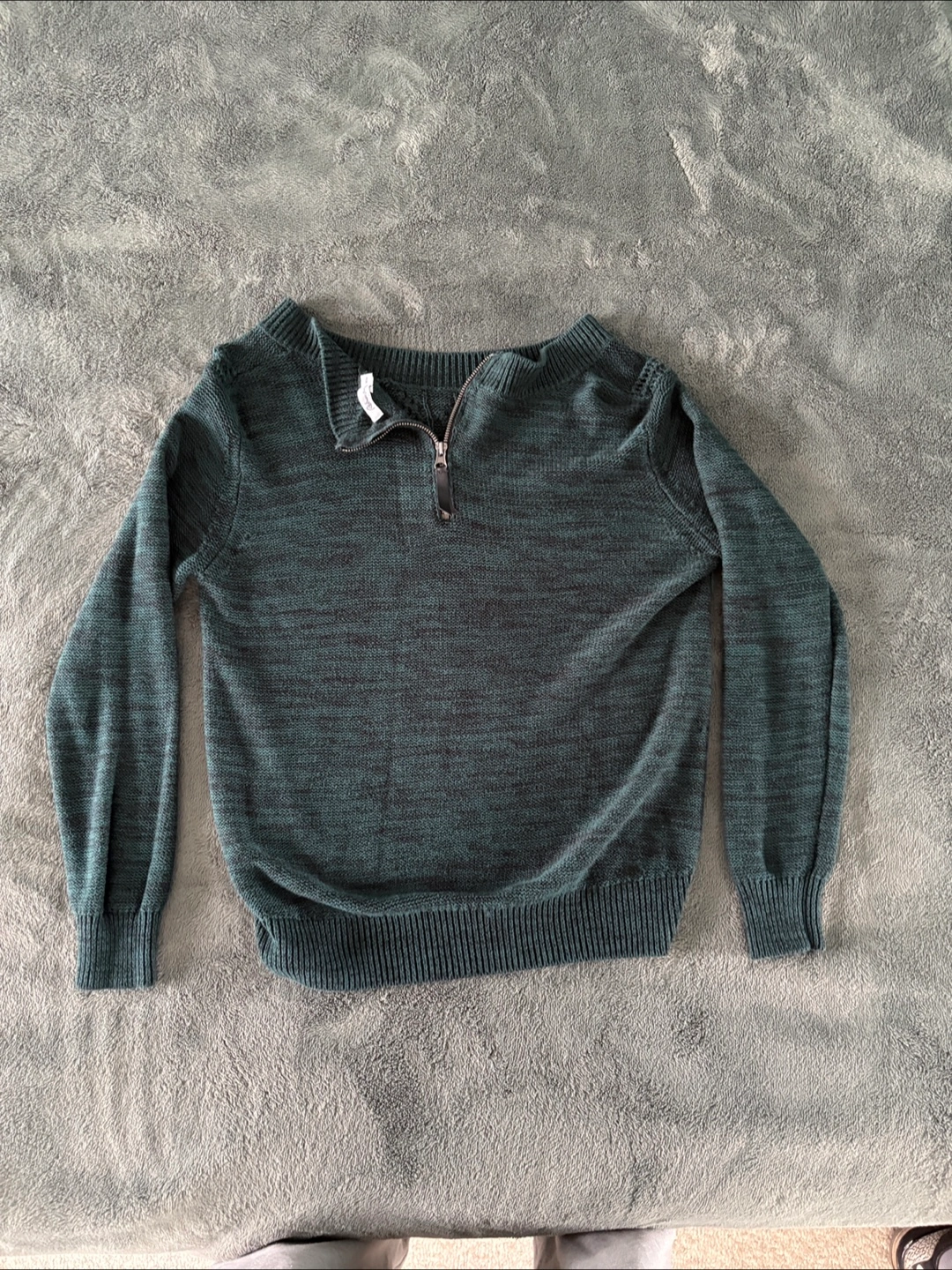 Dark teal green sweater. 1/4 zip. Long sleeves. Size medium/medium.