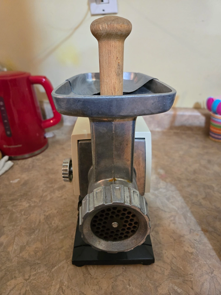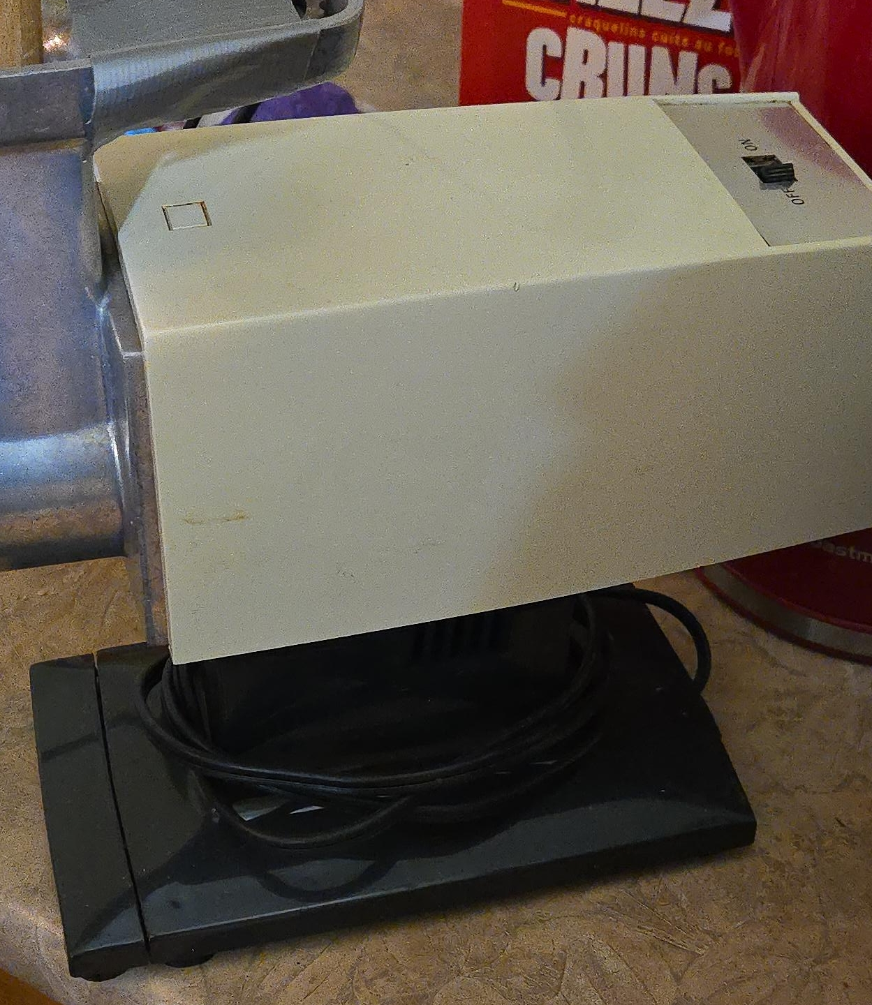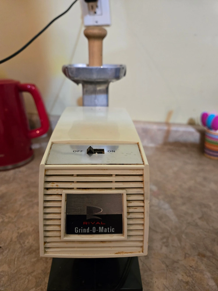 Selling a Rival Grind-O-Matic electric meat grinder. It shows some signs of use, but it's still in good working condition. Perfect for making your own ground meat at home!