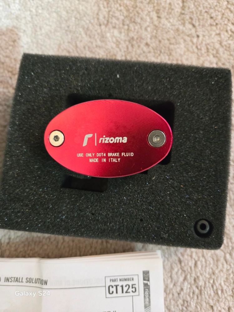 PICK UP ONLY Selling a Rizoma CT125 brake fluid tank in red. It comes with the original box and all included components. Perfect for motorcycle enthusiasts!