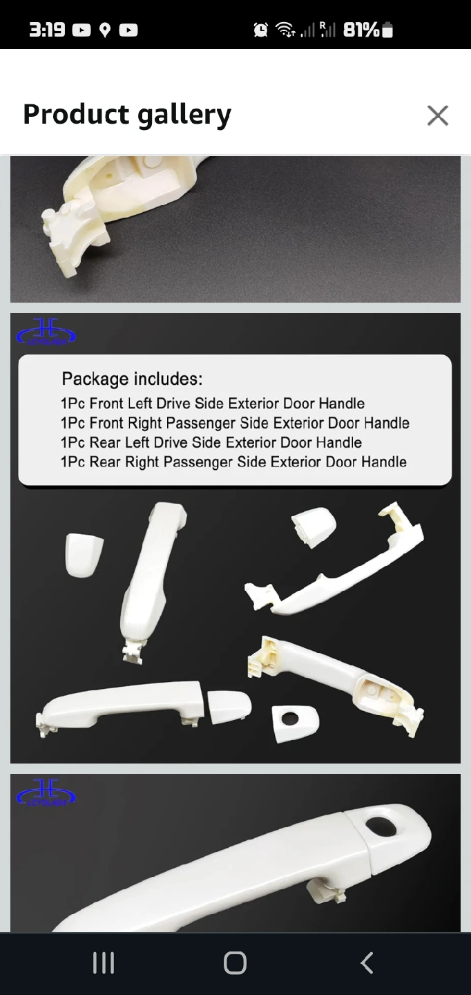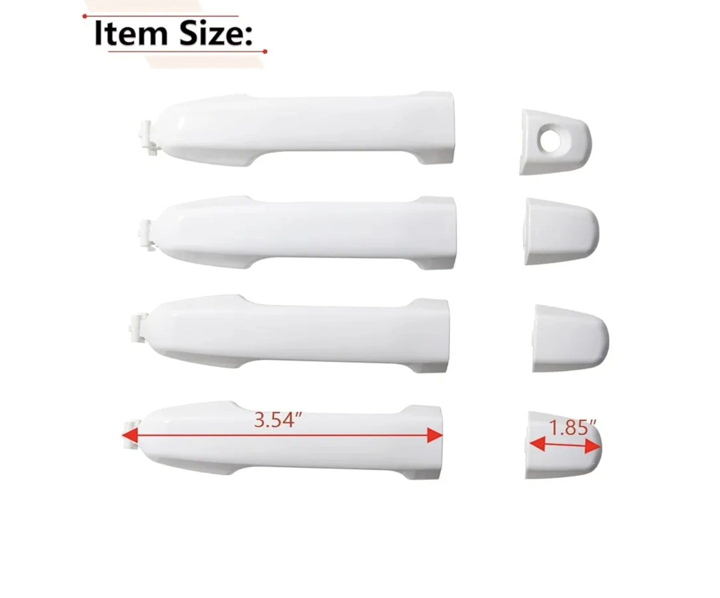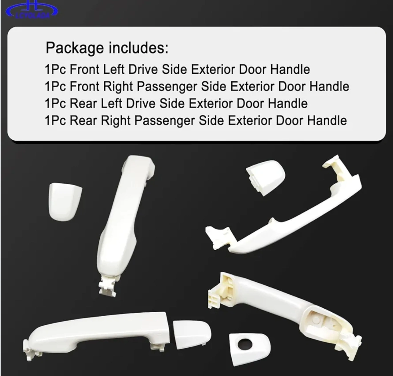 Selling a set of RLB-HILON exterior door handles compatible with Toyota Camry models from 2012-2017. The package includes one front left drive side exterior door handle, one front right passenger side exterior door handle, one rear left drive side exterior door handle, and one rear right passenger side exterior door handle. These are exact OEM replacements and provide an exact color match for a factory appearance. They are stress-tested to last the life of your vehicle. The handle size is approximately 3.54 inches in length and 1.85 inches in width