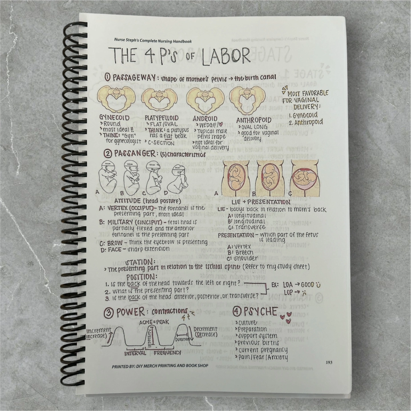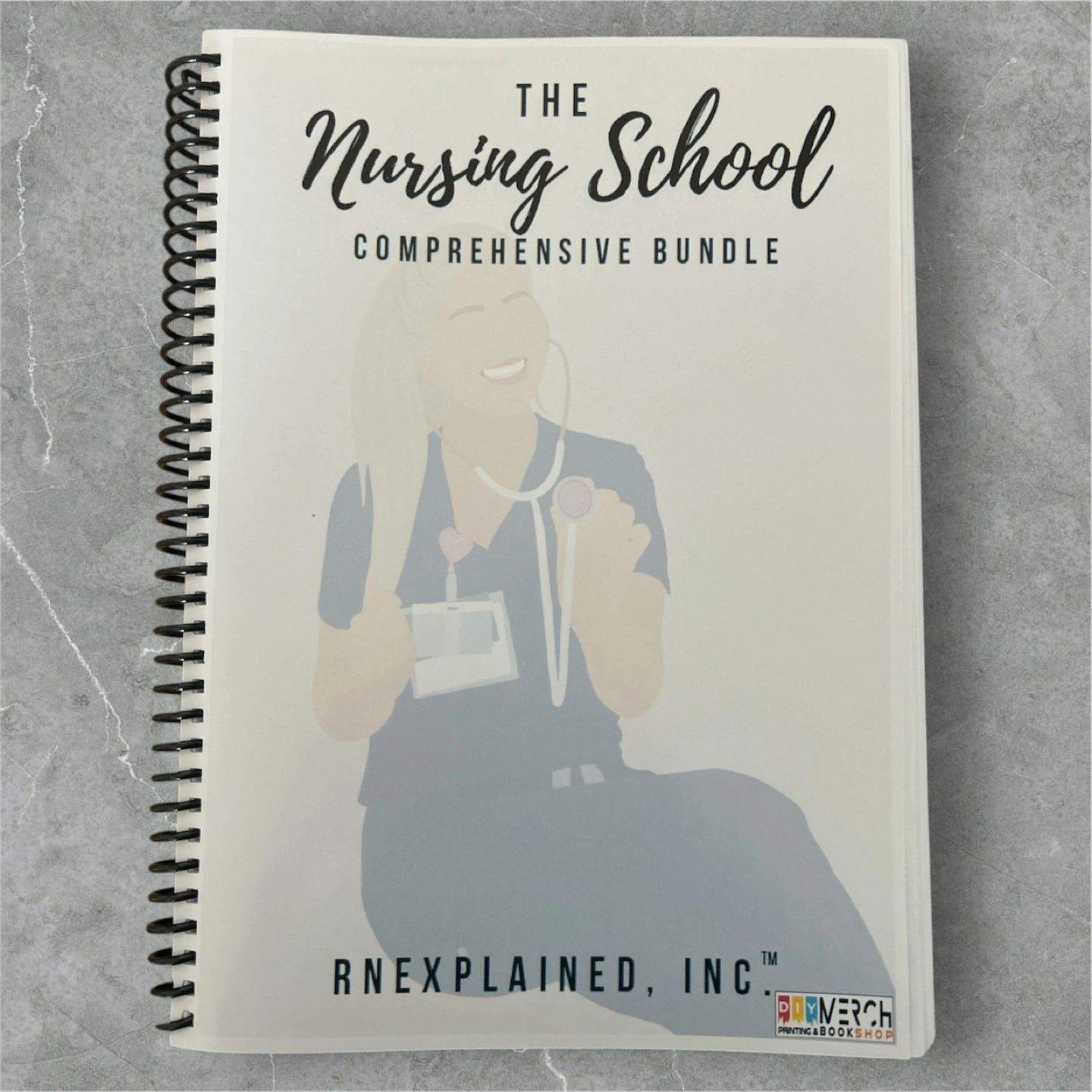 Spiral-bound notebook. Nursing school study guide. Comprehensive bundle.