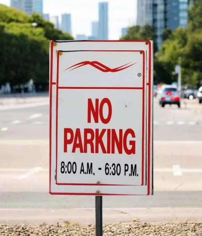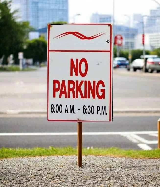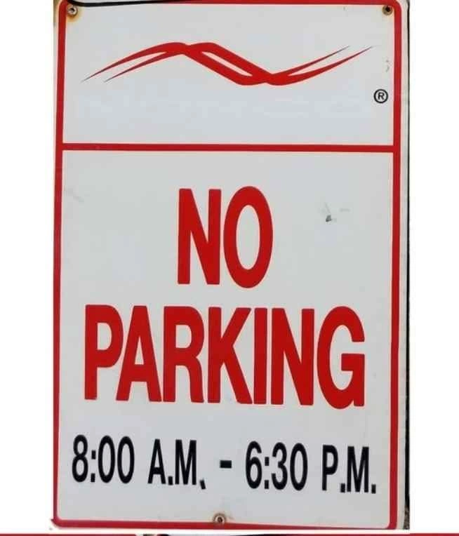 The sign shown indicates that no parking is allowed between the hours of 8:00 A.M. and 6:30 P.M.. Parking is permitted outside of those hours, though other local restrictions, such as a time limit, may still apply. The 8:00 A.M. and 6:30 P.M can be easily removed to make the sign as No Parking.