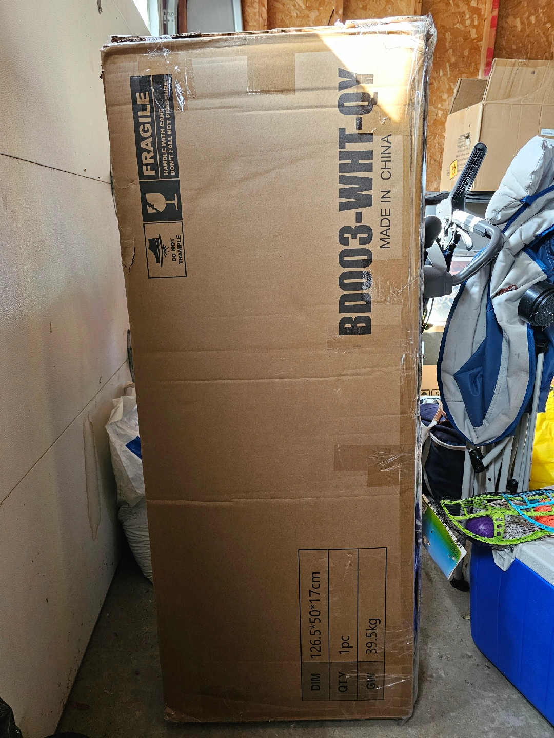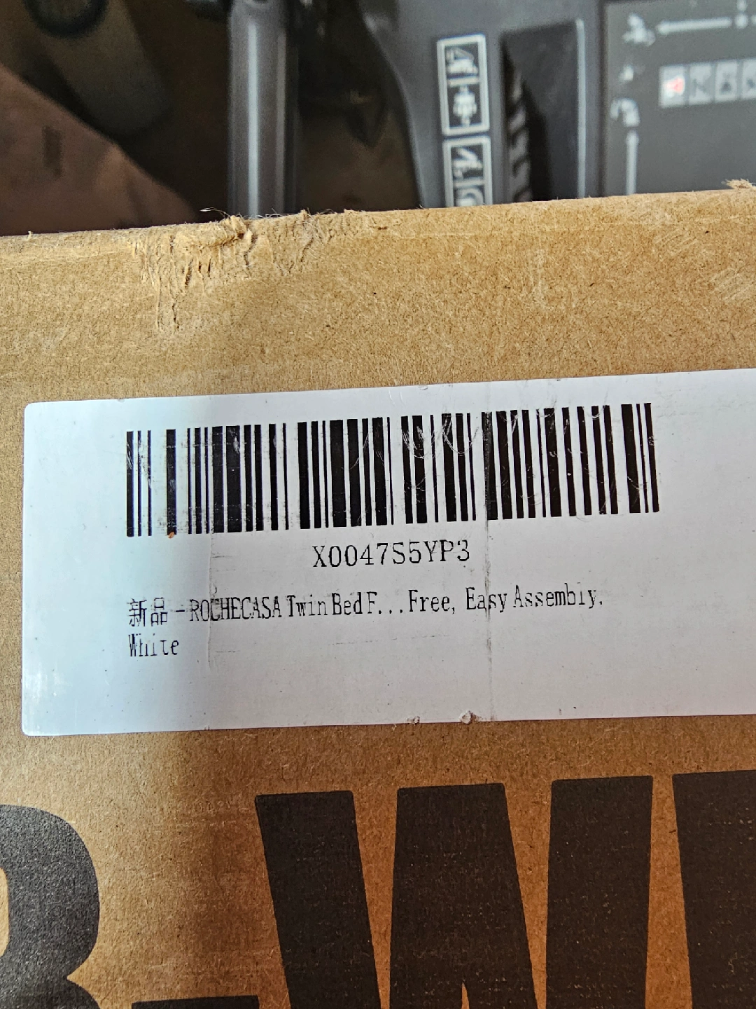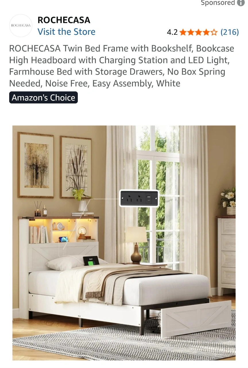 Selling a ROCHECASA twin bed frame with a bookcase headboard. It's white and comes in its original box. The dimensions are 126.5 x 50 x 17 cm. This item was sent to me by Amazon by mistake. Brand new box was opened to see what was inside. Sells for 350$ on Amazon