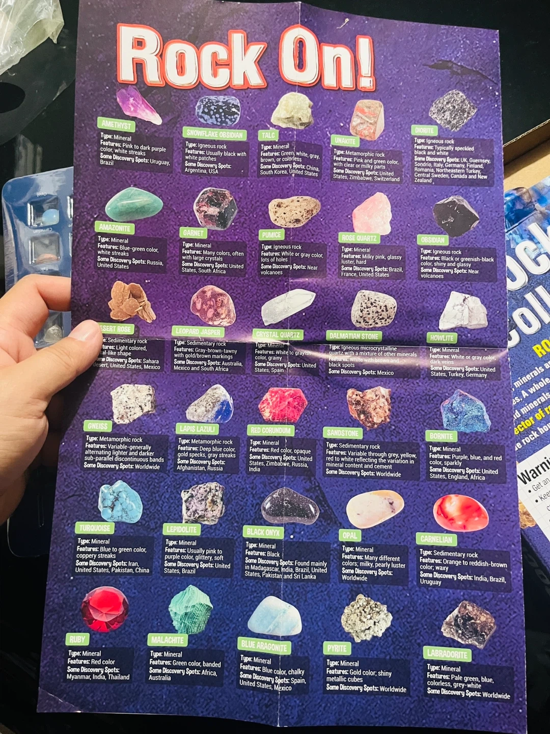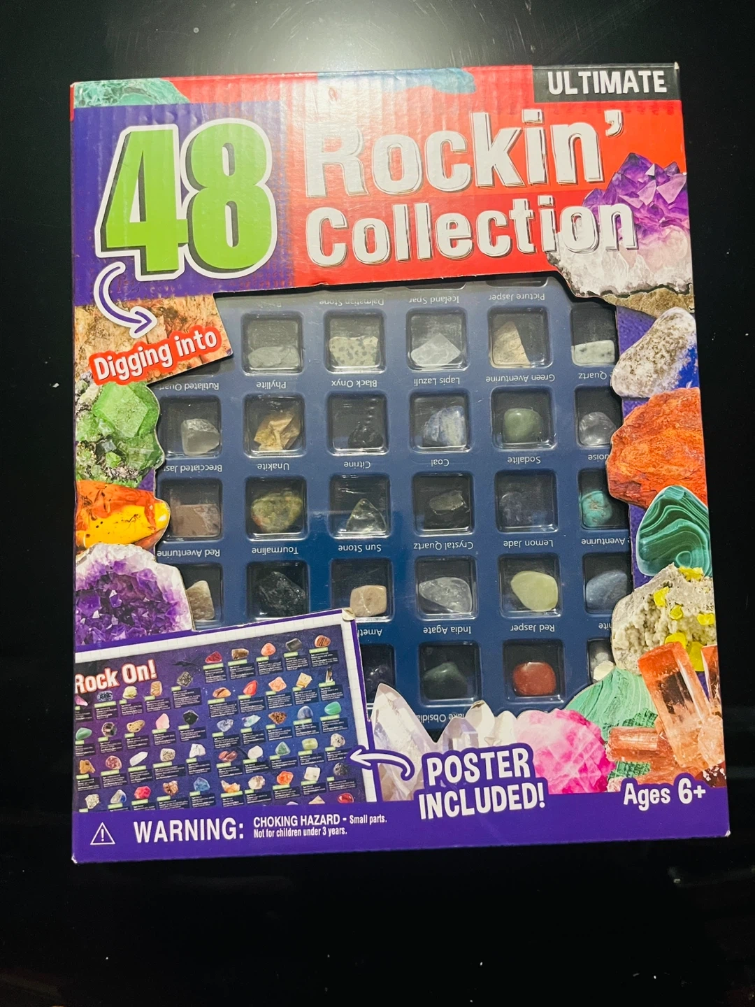 Selling a brand new Rockin' Collection Ultimate 48 rock and mineral collection kit! It's perfect for young rock hounds and amateur collectors. The kit includes 48 different rocks and minerals, each carefully selected. A poster is also included to help identify each specimen. Ages 6+