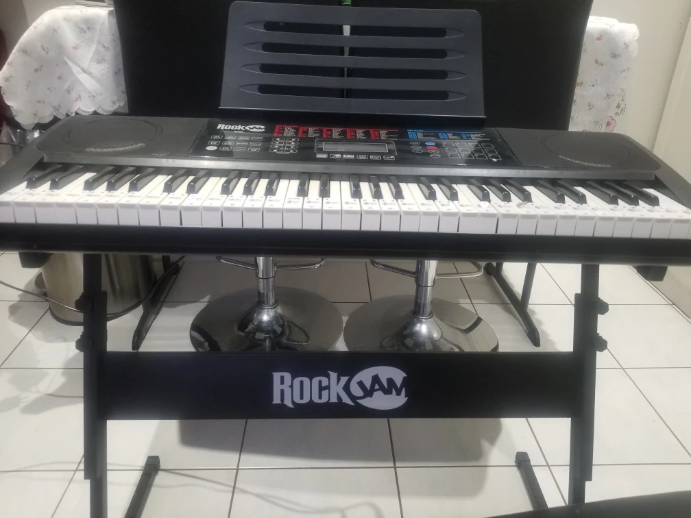 Selling a RockJam 61 key keyboard piano. It comes with a touch display kit, keyboard stand, and piano bench. Great for anyone starting out or looking for a fun musical instrument! no time to learn so almost new.