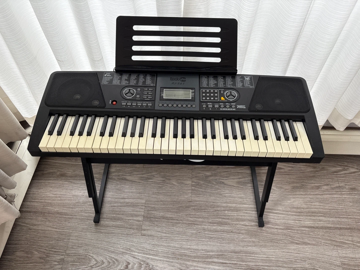 Selling a RockJam RJ-561 electronic keyboard. It has tons of features to help you learn and play music. It comes with different tones and rhythms, and a dual keyboard function. Get ready to make some music!