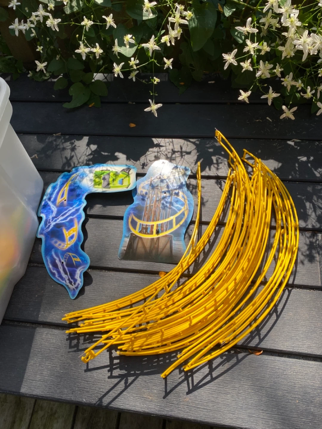 Selling some Roller Coaster Tycoon 3 pieces! Includes yellow coaster tracks and two decorative pieces. Great for completing your set or replacing lost parts