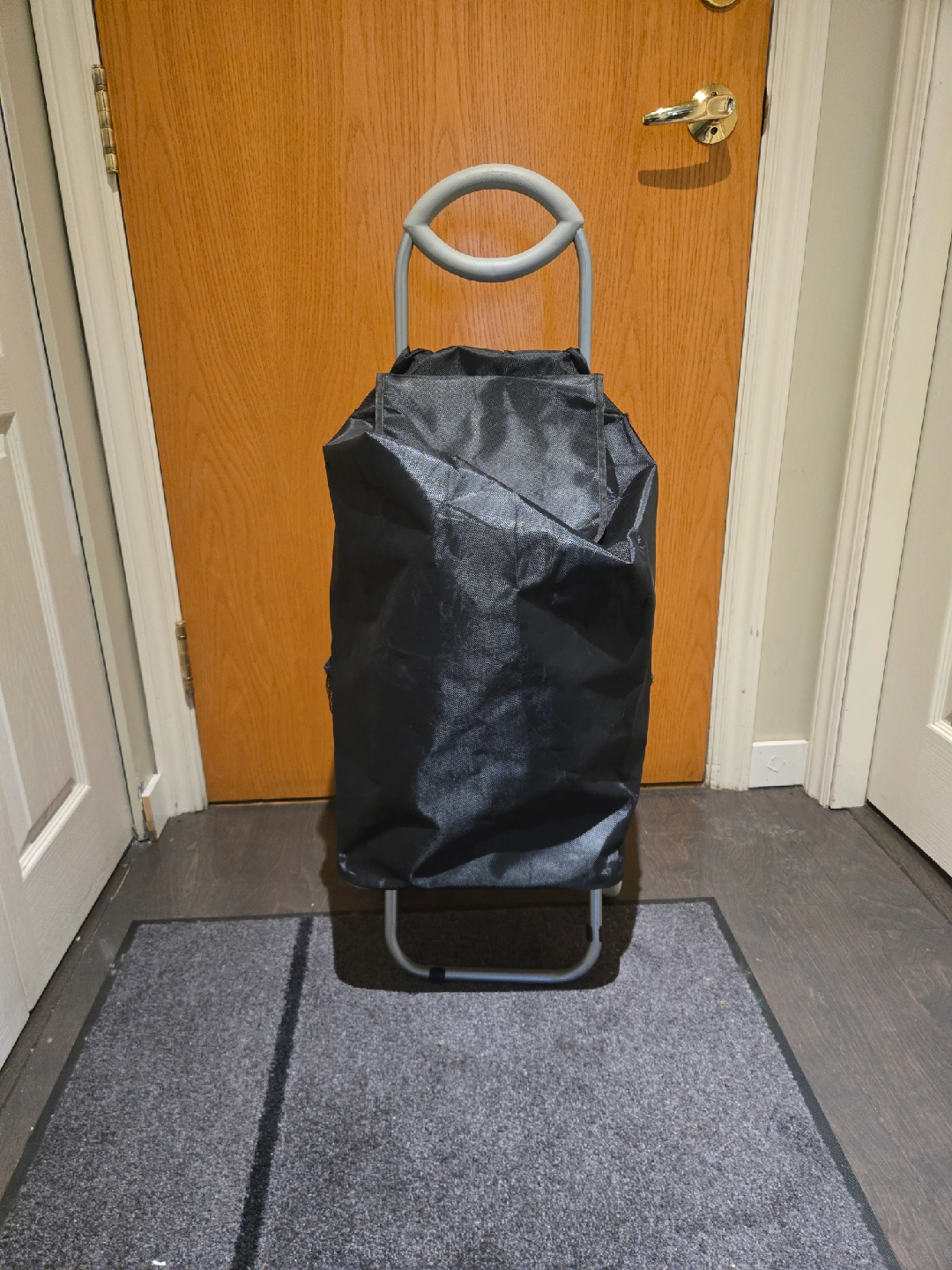 Selling a handy rolling shopping cart in black! It's perfect for groceries or carrying items around town. It's in great condition and ready to go!