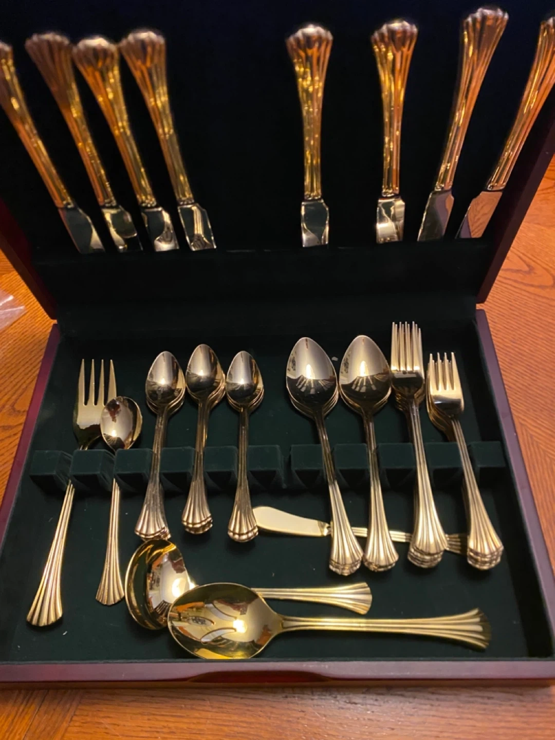 Roma Gold Plated Splendid 8 Piece Place Setting Cutlery Set in a beautiful wooden display box.