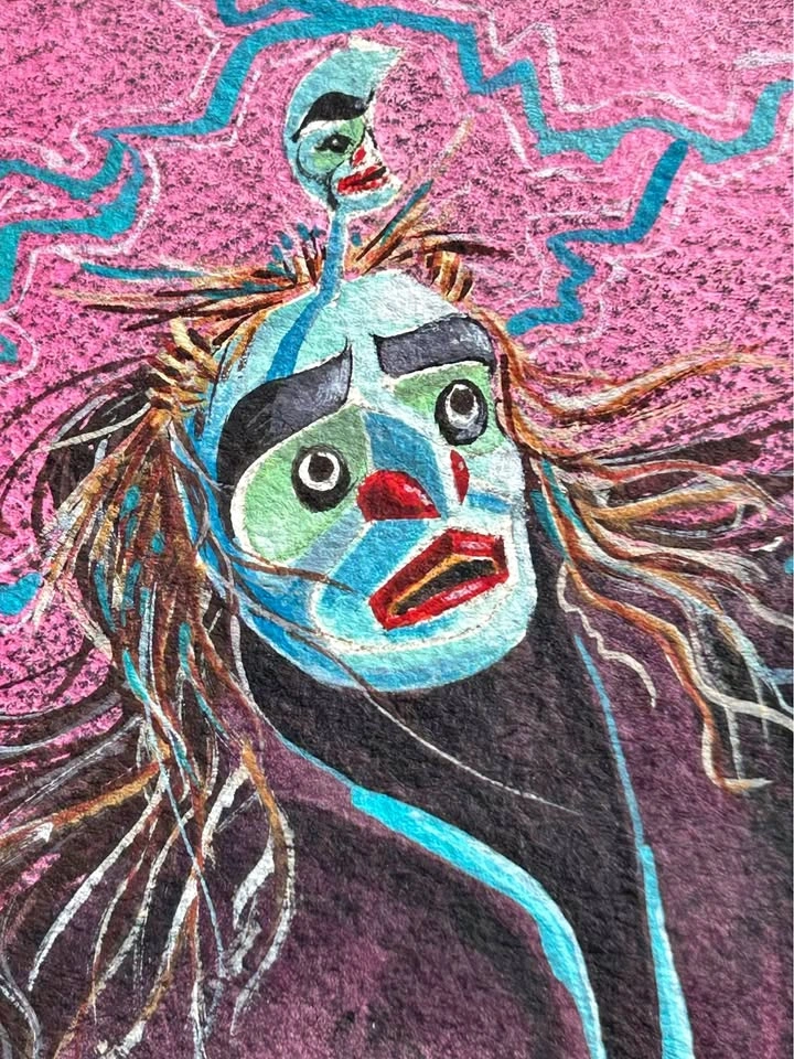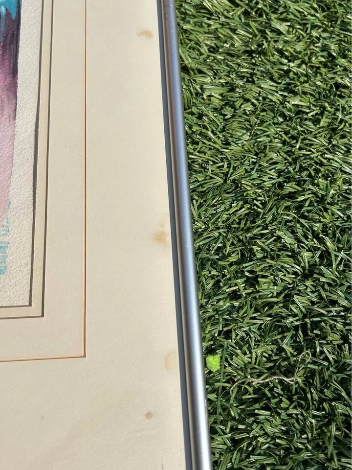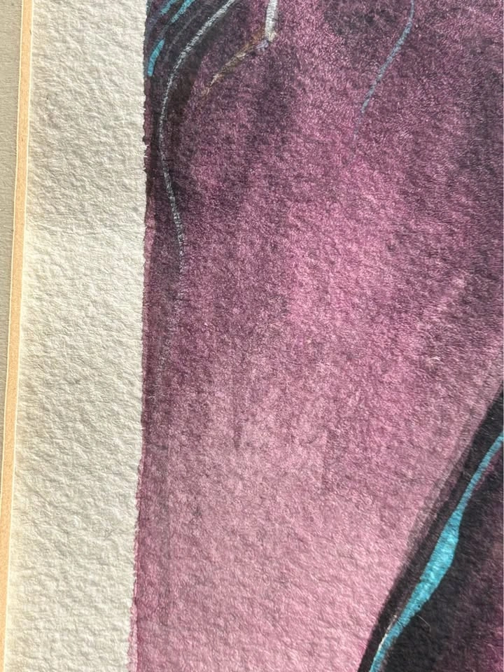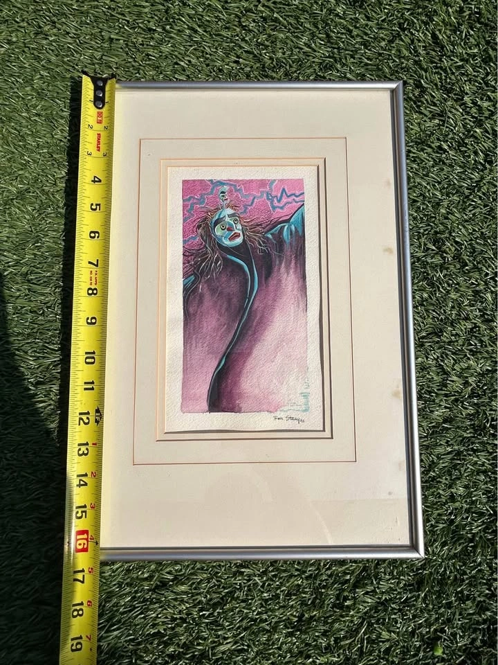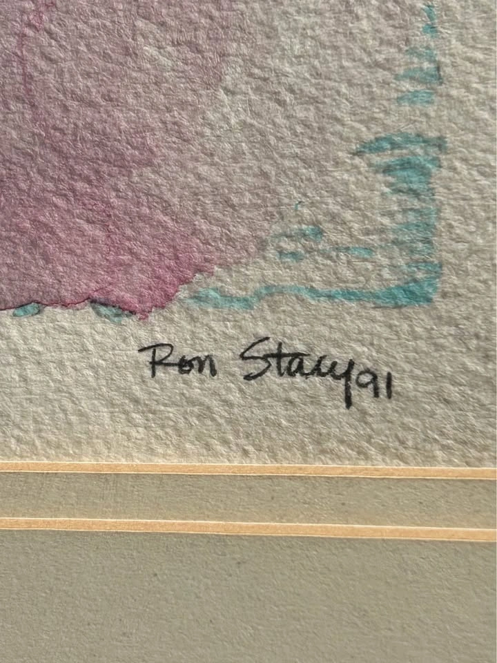 Original 1991 watercolour by Canadian artist Ron Stacy (b. 1943). Signed lower right. Depicts a striking spirit mask figure with a flowing purple background and electric blue accents. Matted and framed under glass. A vibrant and collectible piece of Canadian art. Frame: 16,5”/11,5” Pick up: Seton area, Calgary. See also my other lots. Open to your questions and suggestions. If necessary, I provide additional photos. These are not new things, so please look carefully at the photos and videos. Sizes are submitted on request and also using a tape measure in the photo.