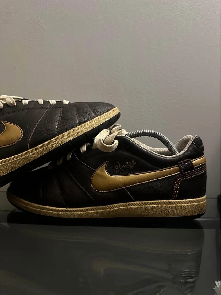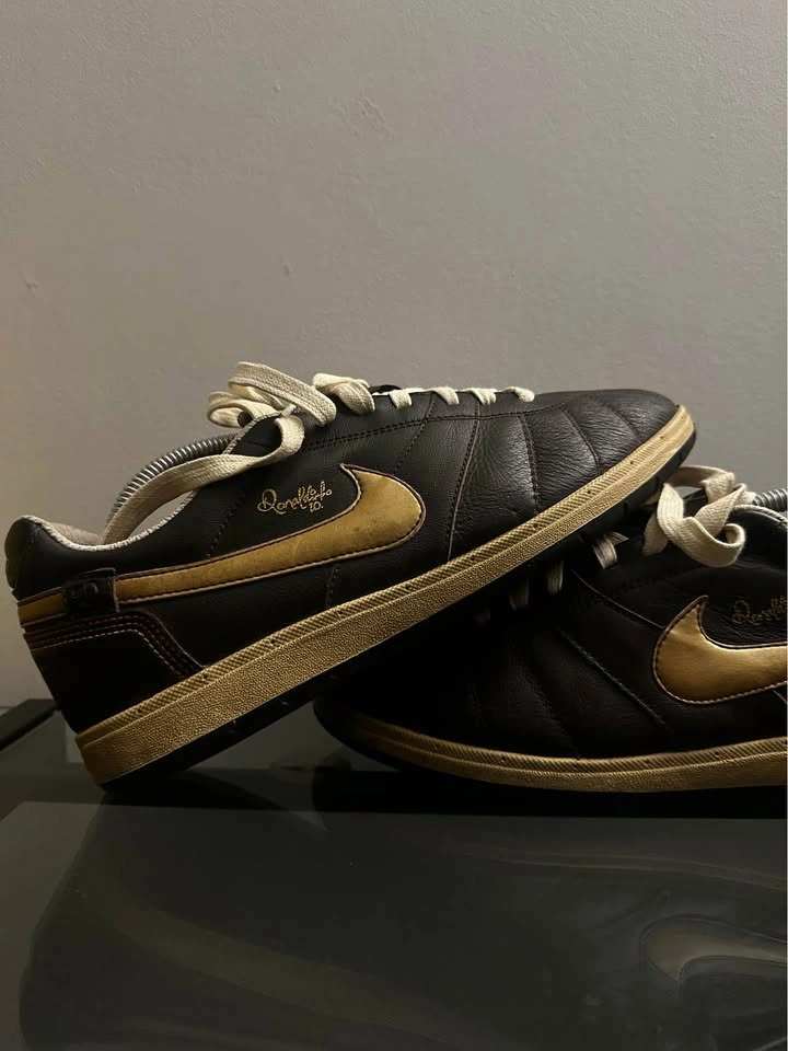 Rare Ronaldinho NIKE AIR Indoor Soccer Shoes Brown Mens Size 9.5. Condition is amazing for their age. Pick up Kipling and Dundas