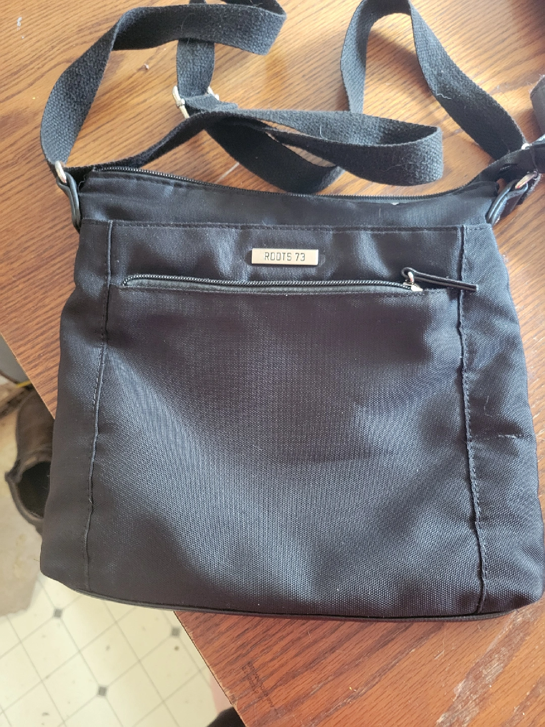 Selling a Roots 73 crossbody bag in black. It's in great condition and ready for a new home! Perfect for everyday use or travel