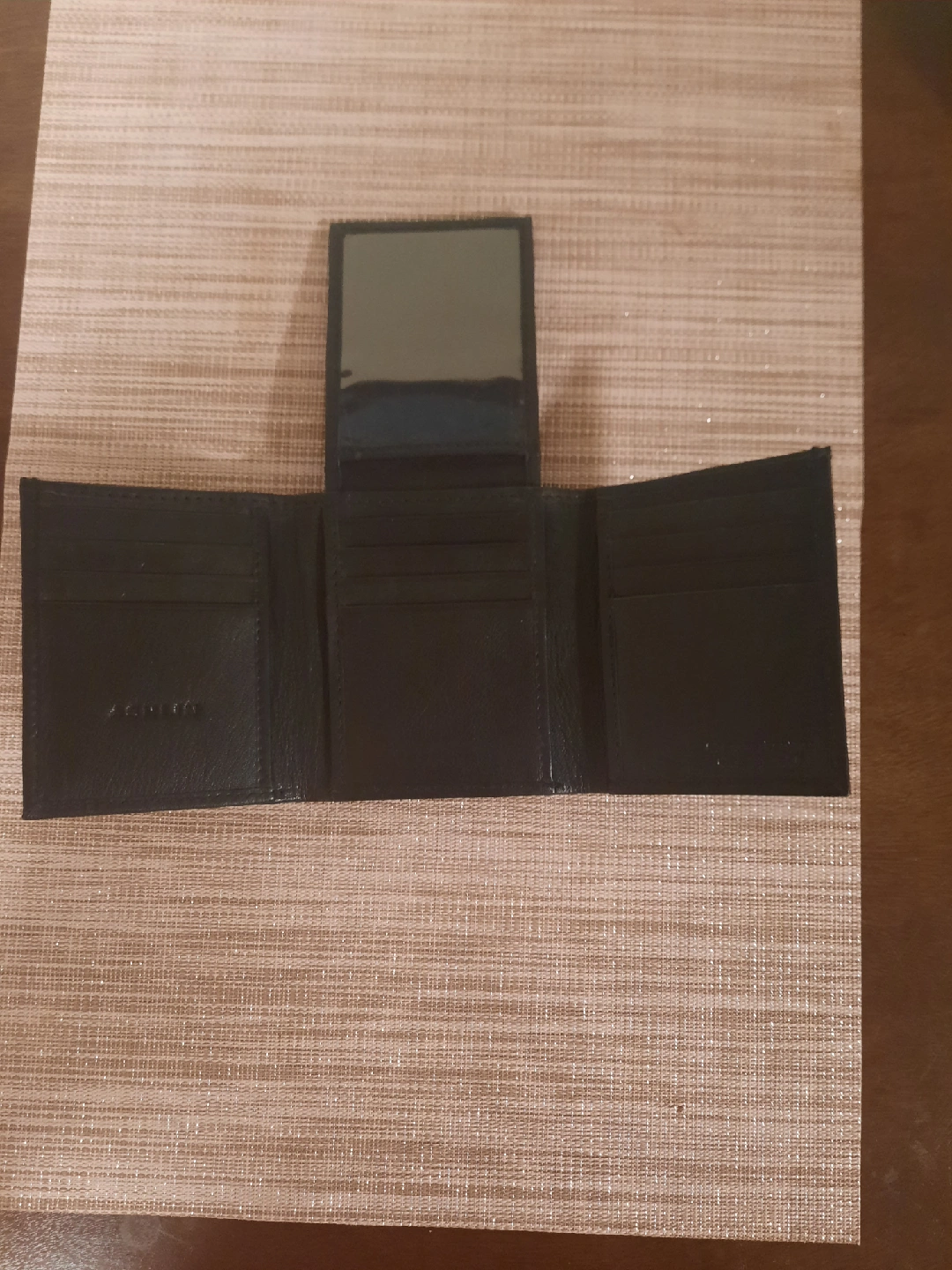 Selling a black leather trifold wallet from Roots! It's in great condition and has lots of space for cards and cash- never used.