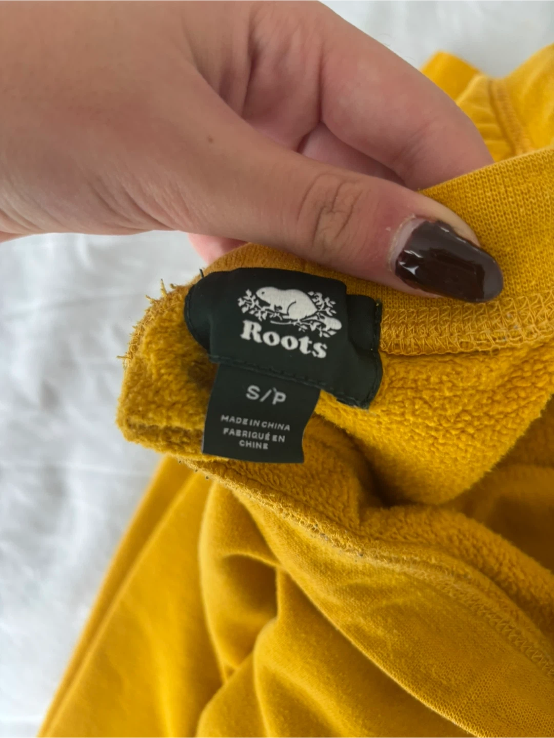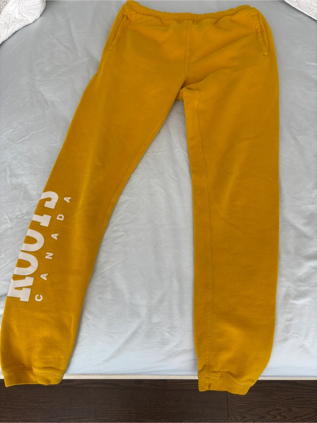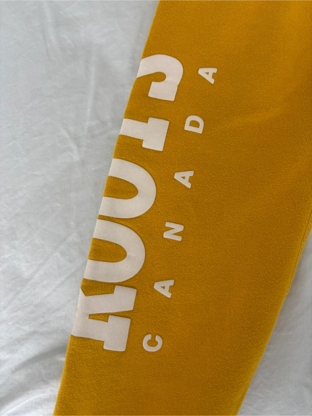Selling a pair of Roots Canada sweatpants in yellow! They're super comfy and have the classic Roots logo down the leg. Perfect for lounging around the house or running errands Pickup in oakville