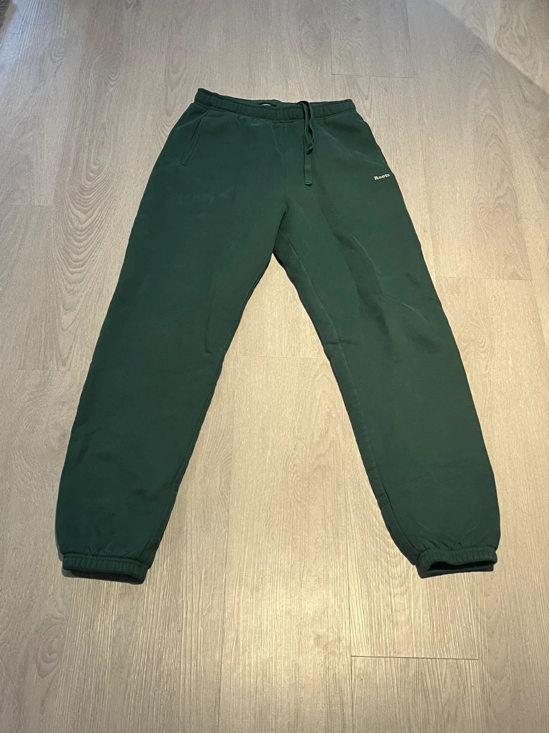 Selling a pair of Roots sweatpants in a lovely green colour! They are a size small and in great condition. Perfect for lounging around the house or running errands. They're super comfy! If bought with other items, could work out a better deal!
