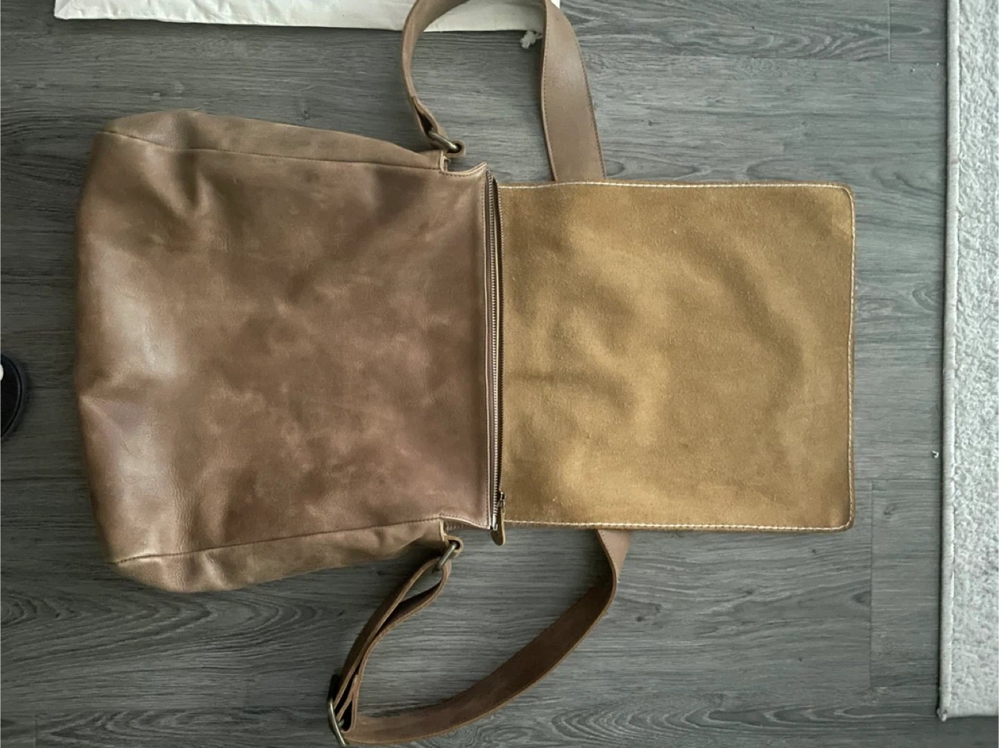 Roots leather messenger bag in great condition! It's a beautiful brown colour and features a sturdy strap and a zippered closure. Perfect for carrying your everyday essentials. Comes with the original dust bag!