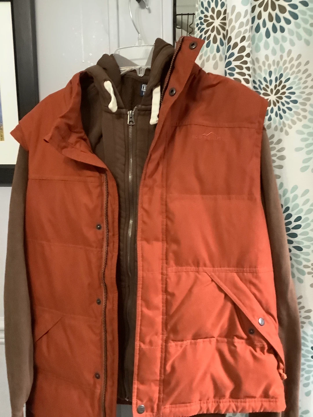 Selling a Roots puffer vest in orange. It's in great condition and perfect for layering on those chilly days! It has a classic puffer design and a comfortable fit