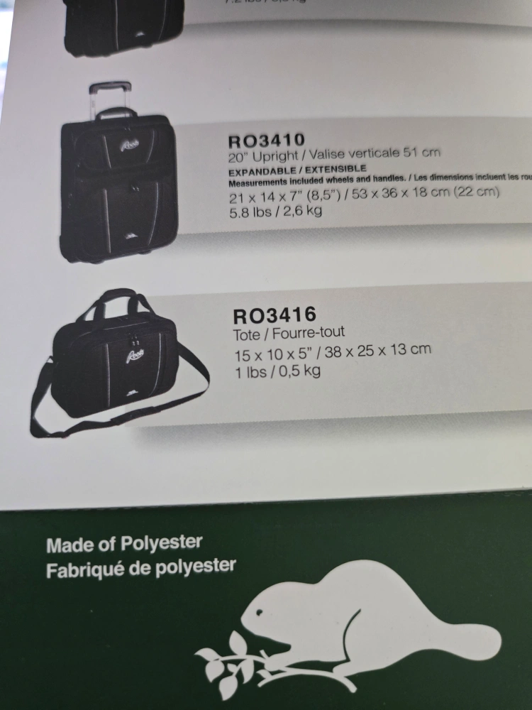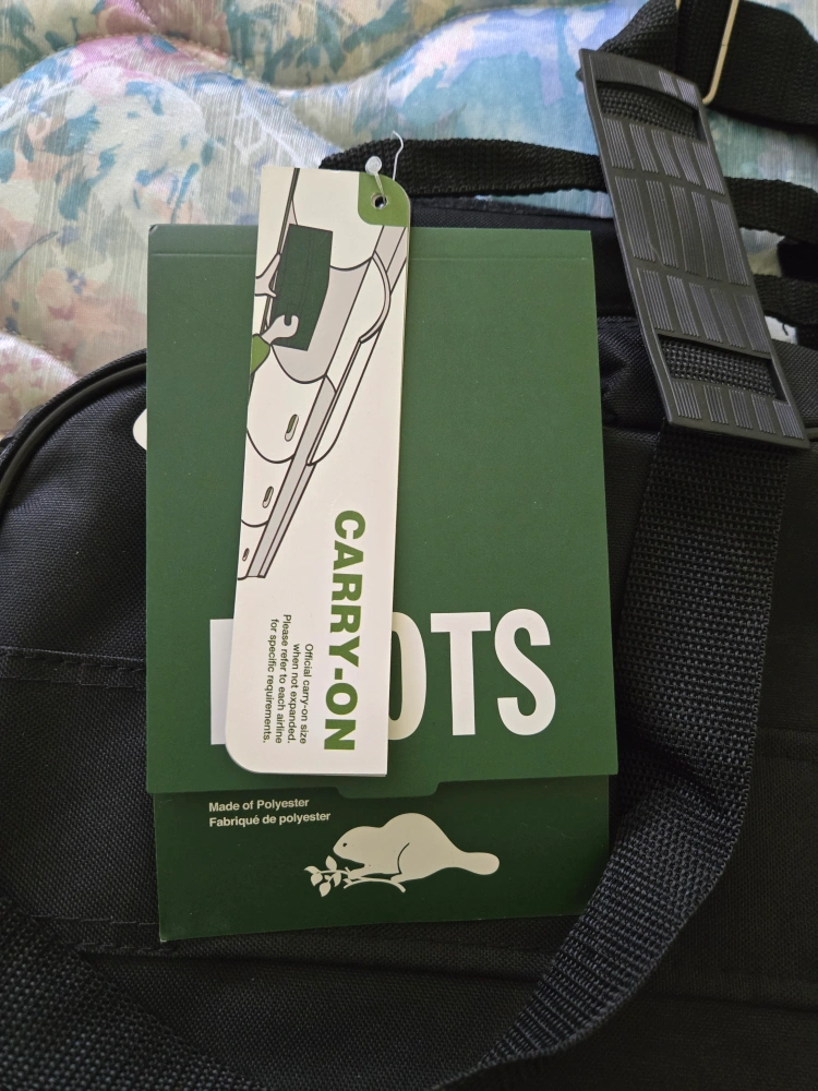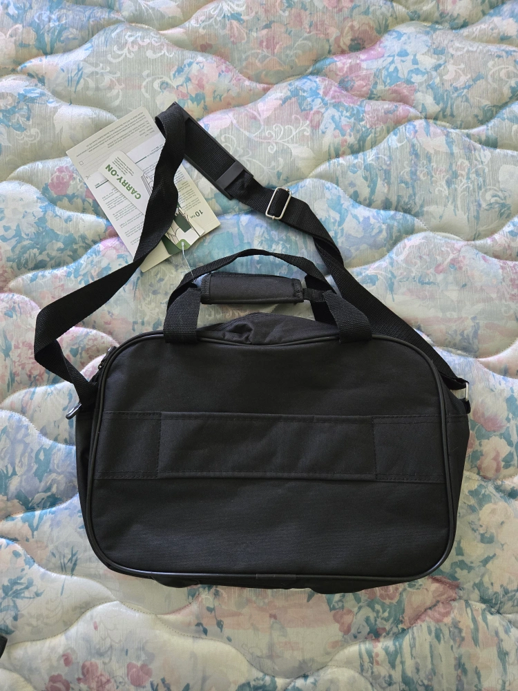I'm selling a brand new Roots RO3416 tote bag! It's black and made of polyester. - Size: 15 x 10 x 5" / 38 x 25 x 13 cm - Weight: 1 lbs / 0.5 kg Perfect as a carry-on!