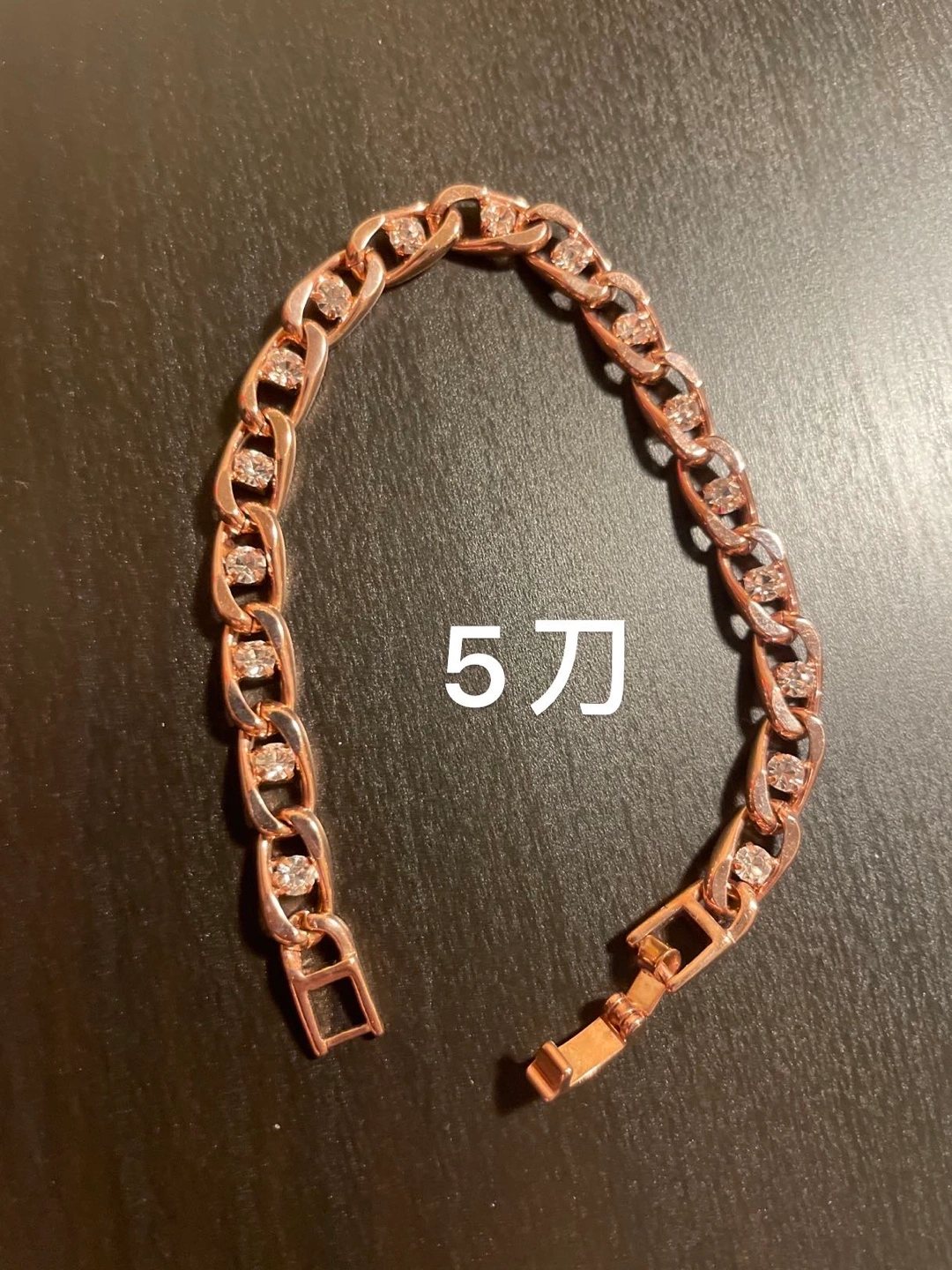 Rose gold chain bracelet with cubic zirconia stones. Clasp closure.