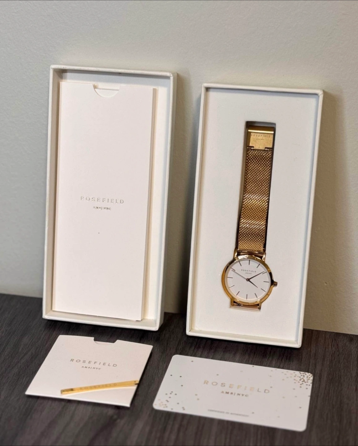 Rose gold watch. White watch face. Comes in original box with papers. A perfect accessory to elevate any outfit. Need Battery Replacement as it’s Dead Naturally! I purchased this for someone as a wedding gift but unfortunately we canceled to attend the wedding so it’s sitting in my wardrobe for long🙂