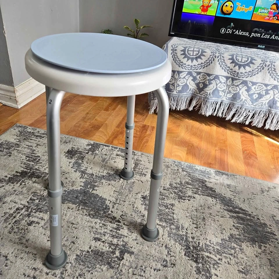 Brand new rotating shower stool. Height adjustable round bath chair with 360 degree padded rotating seat for children, elderly, and pregnant disabled care. Material: Aluminum Item Weight: 1.97 Kilograms. Maximum Weight Recommendation: 100 Kilograms. Minimum Height: 36 Centimeters. Pick it up Niagara Falls
