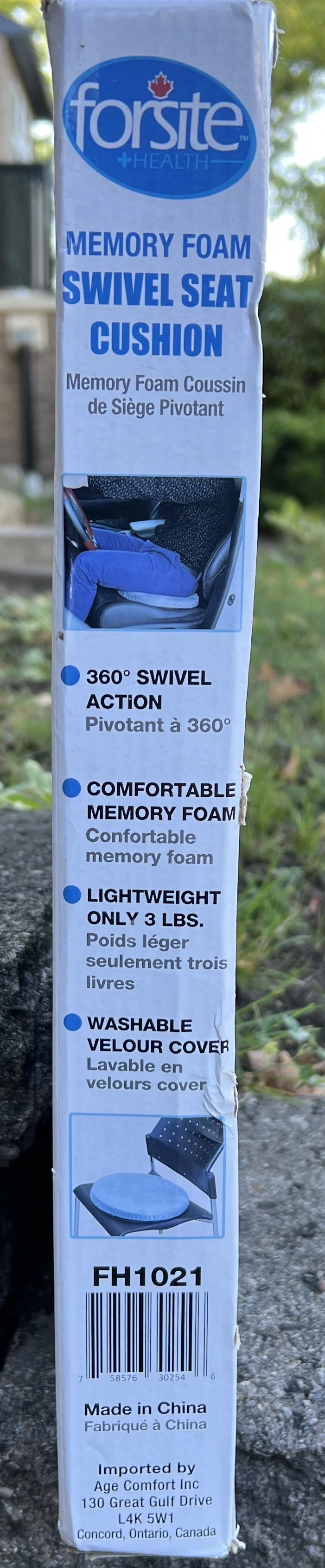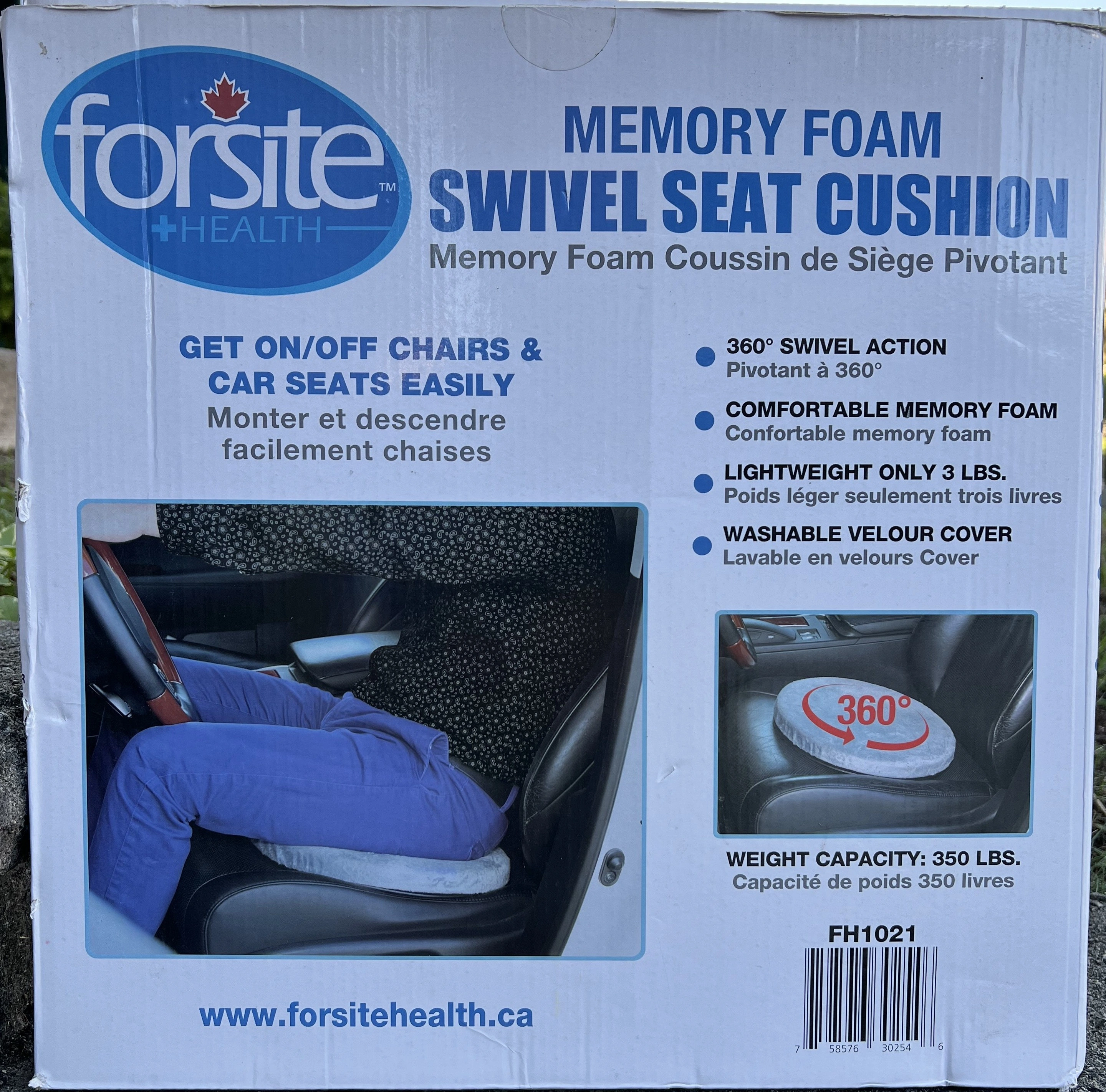 Rotating Swivel Seat Cushion, 360 Degree Rotation Skidproof Cushion Convenient for Sitting or Standing from Car Used for Pregnant Women Elderly Use Swivel Seat is a mobility aid that uses a rotating base and memory foam cushion to help individuals with limited mobility, such as those with back pain or stiffness, enter and exit seats easily. It provides 360-degree swivel action, reducing back, hip, and knee strain by eliminating the need to twist. The seat features a non-slip base to stay secure, a comfortable and removable machine-washable cover, and a high-density memory foam cushion Key Features 360-Degree Swivel: The entire seat rotates smoothly in any direction, allowing for effortless movement and transfer from a seat. Memory Foam Comfort: The high-density memory foam conforms to your body, providing pressure relief and comfort, especially for prolonged sitting. Mobility Aid: It's designed for people with limited mobility, helping them avoid the twisting and turning that can cause pain in the back, hips, and knees. Non-Slip Base: The base of the cushion has a textured, non-slip material to keep it securely in place on various flat surfaces, such as car seats or office chairs. Portable and Lightweight: The seat is designed to be portable, making it easy to move between your car, home, or office. Easy to Clean: It features a removable and machine-washable velour or fabric cover for simple cleaning and maintenance. Dimensions: Diameter 15” / Memory Foam Thickness 1 ¼”
