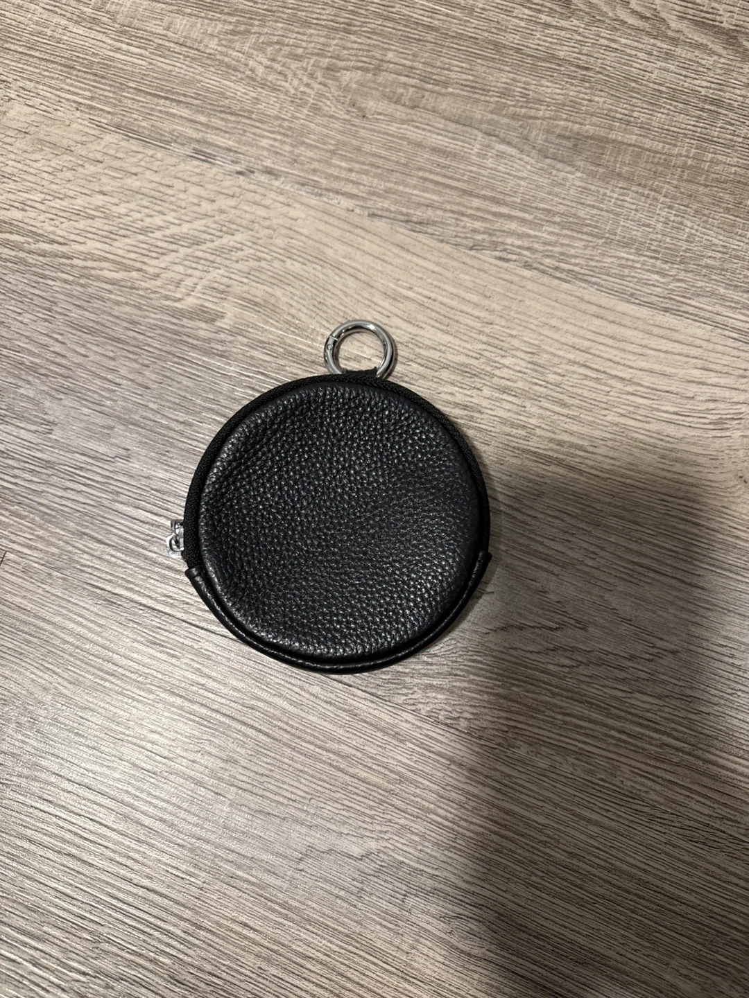 A cute and compact round coin purse! It's in great condition and perfect for holding your loose change or small essentials It's black and has a textured finish PU leather.