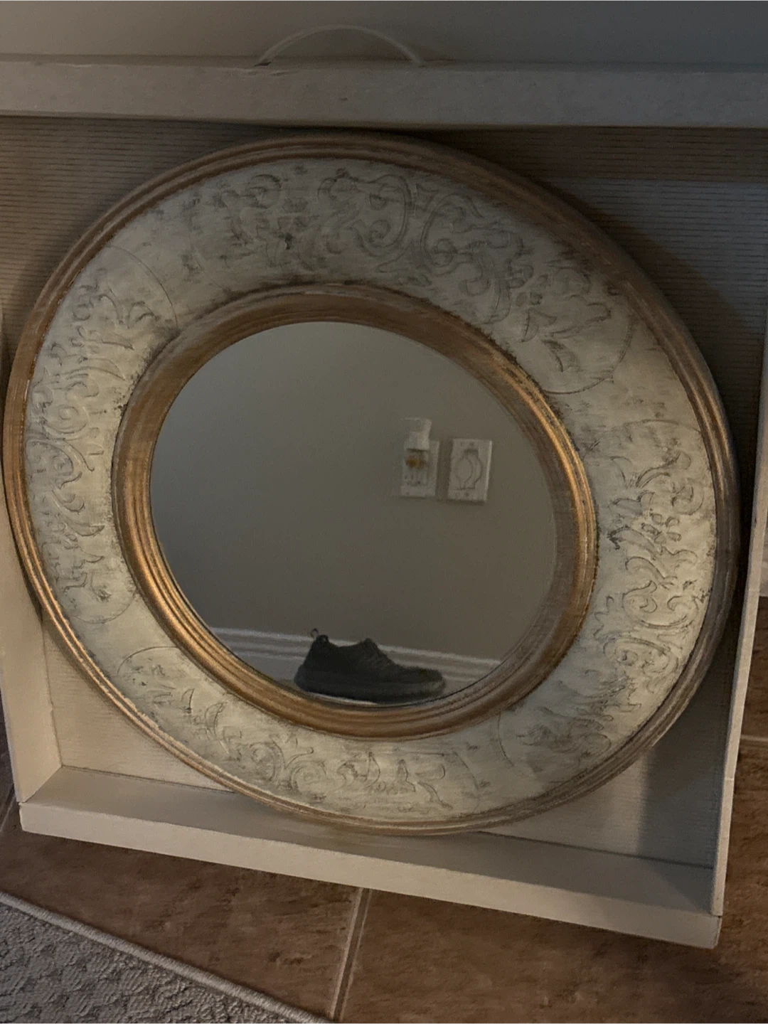 Selling a decorative round mirror! It has a lovely detailed frame. Perfect for adding a touch of elegance to any room