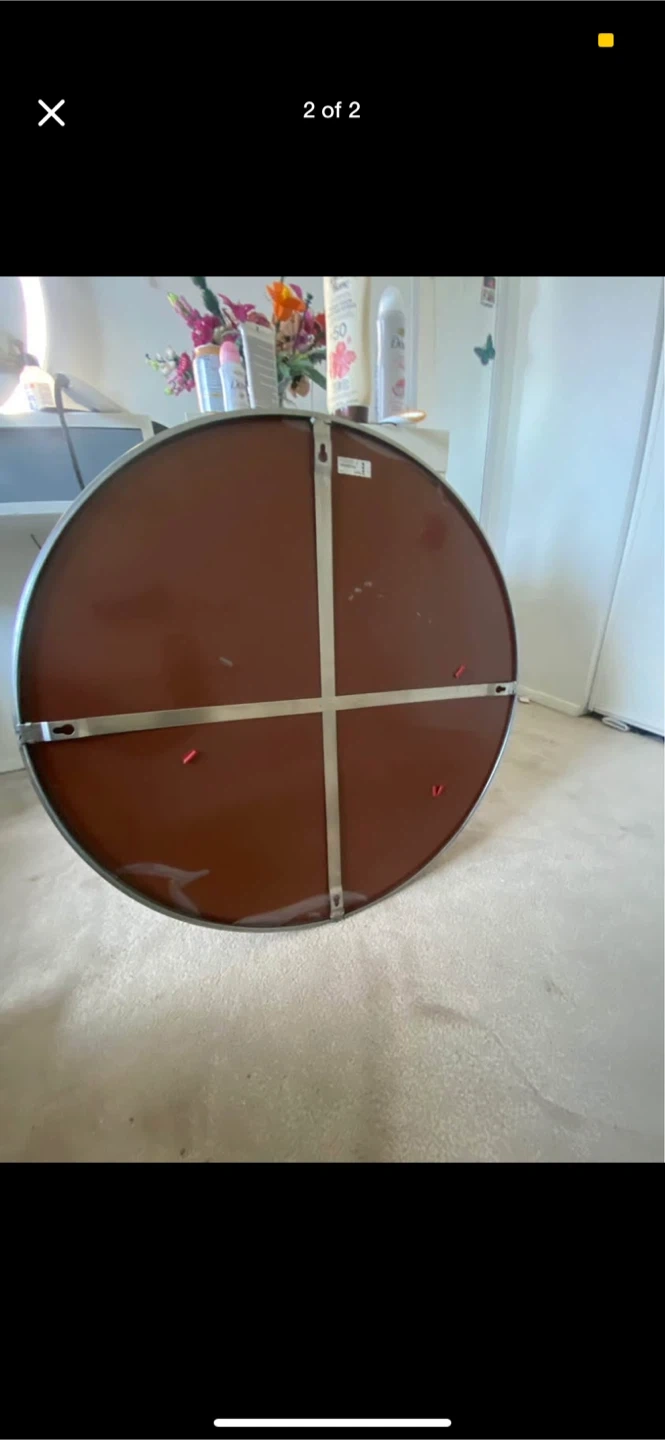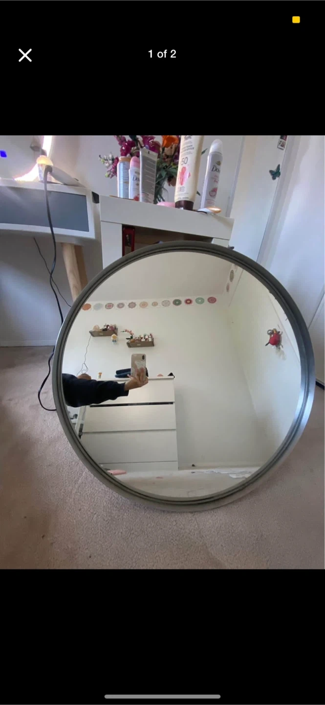 Selling a round wall mirror. It's in great condition and ready to brighten up your space! The mirror has a silver frame.
