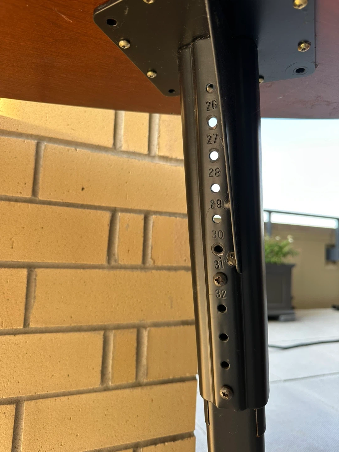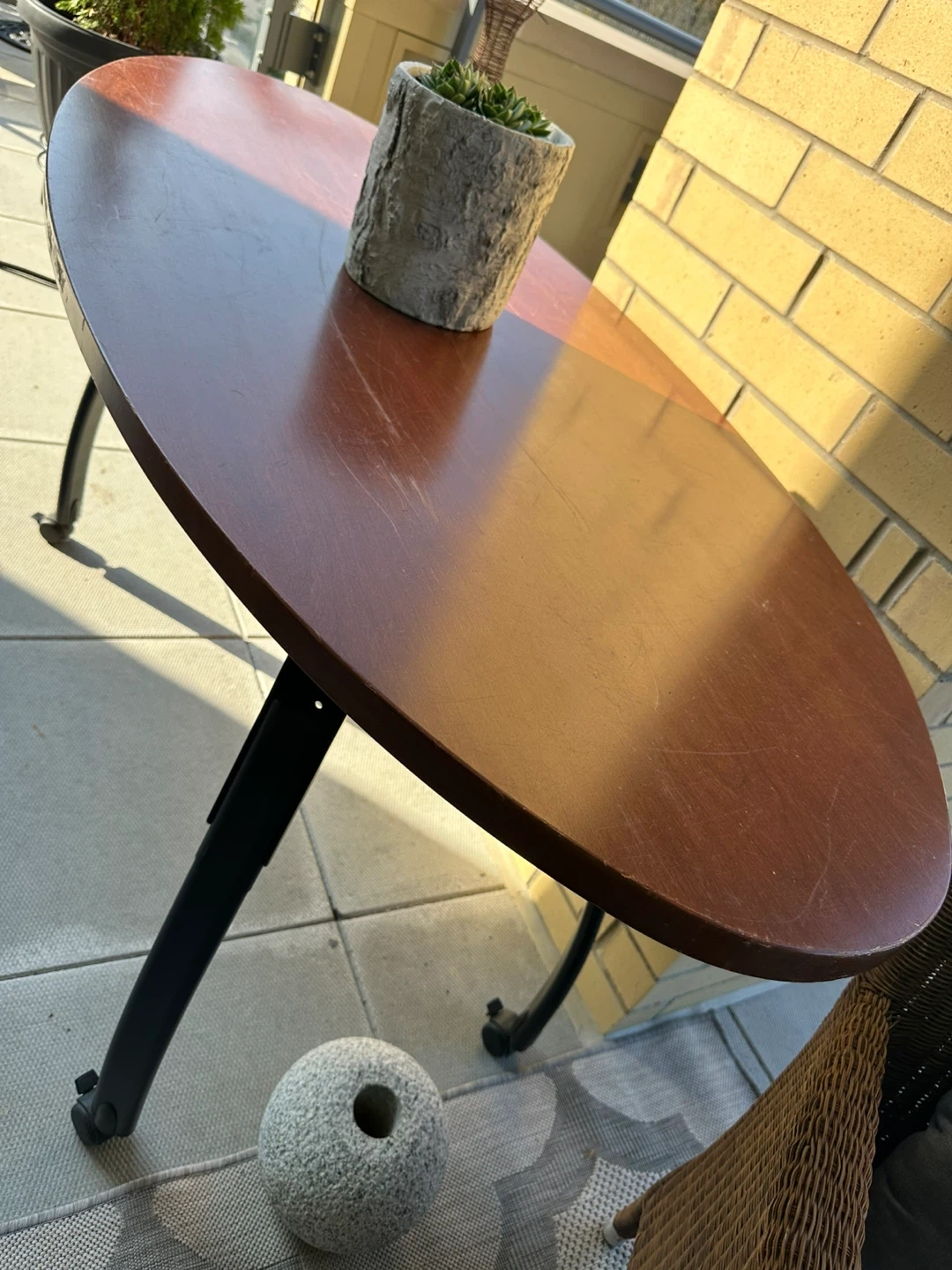 Oval dining table With adjustable table heights Steel legs with rolling wheels Wheels lock Wood has few scratches Dimensions: 66in long 30 inches deep 33 inches high (can adjust to a few different heights, as low as 26 inches) Sfpf Pick up Ninth Line & Hoover park Serious buyers only please Selling a round wooden table that's perfect for a small dining area. The height is adjustable, so you can customize it to your needs. It is in good condition and ready for a new home