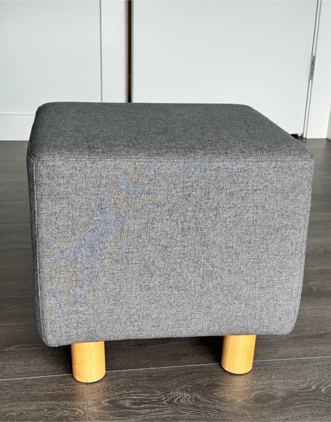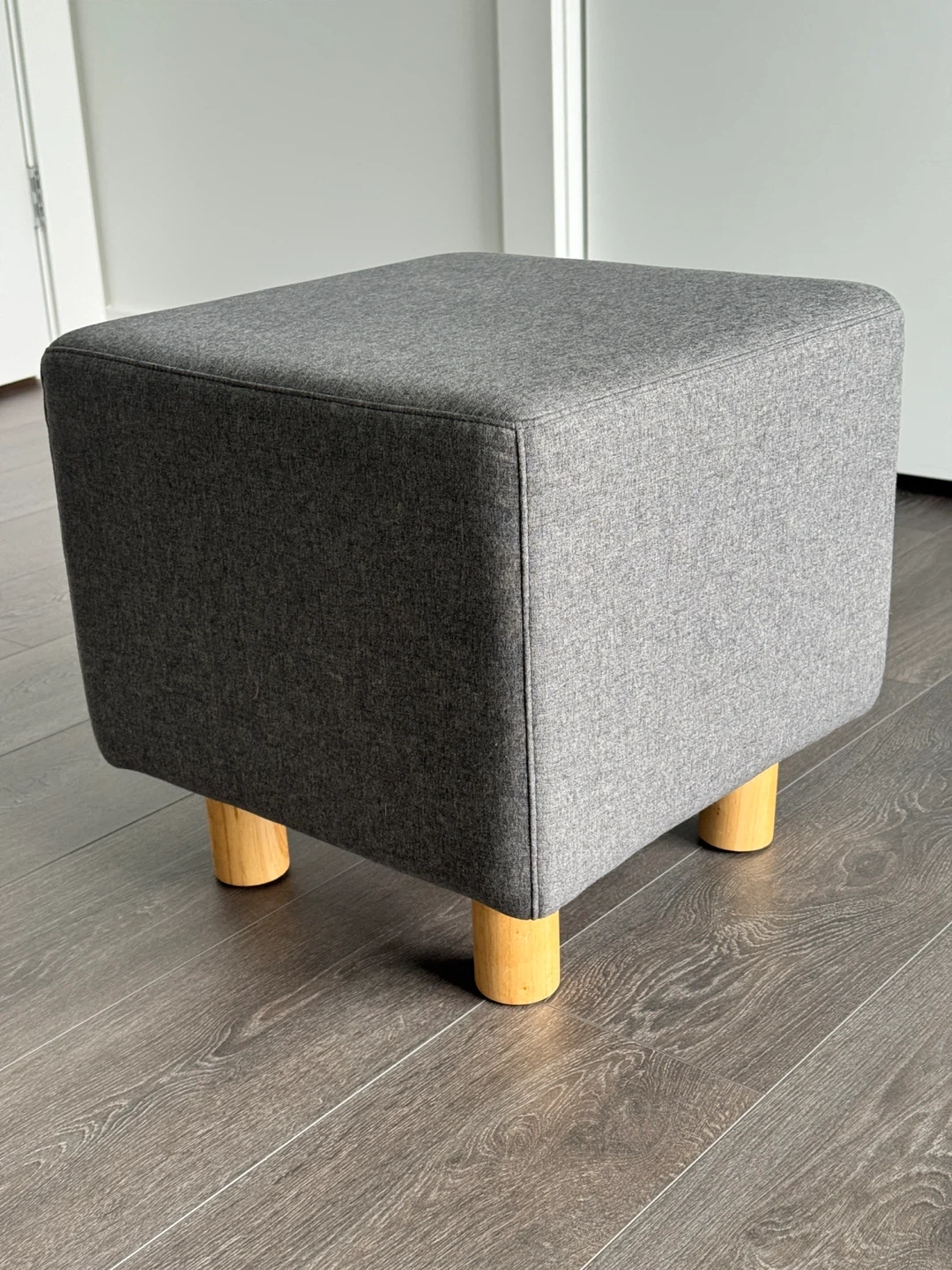 Lovely grey ottoman from Rove Concepts. A nice addition to any living space as an extra seat or foot stool. The wooden legs add a touch of warmth to the design.