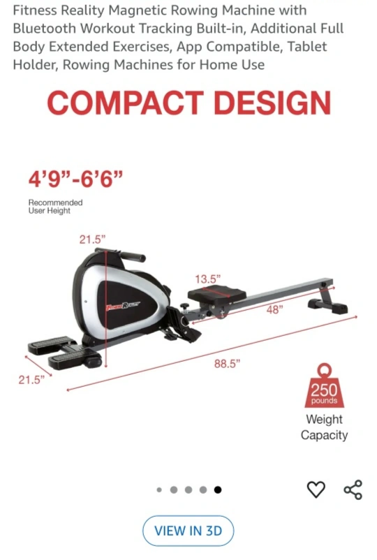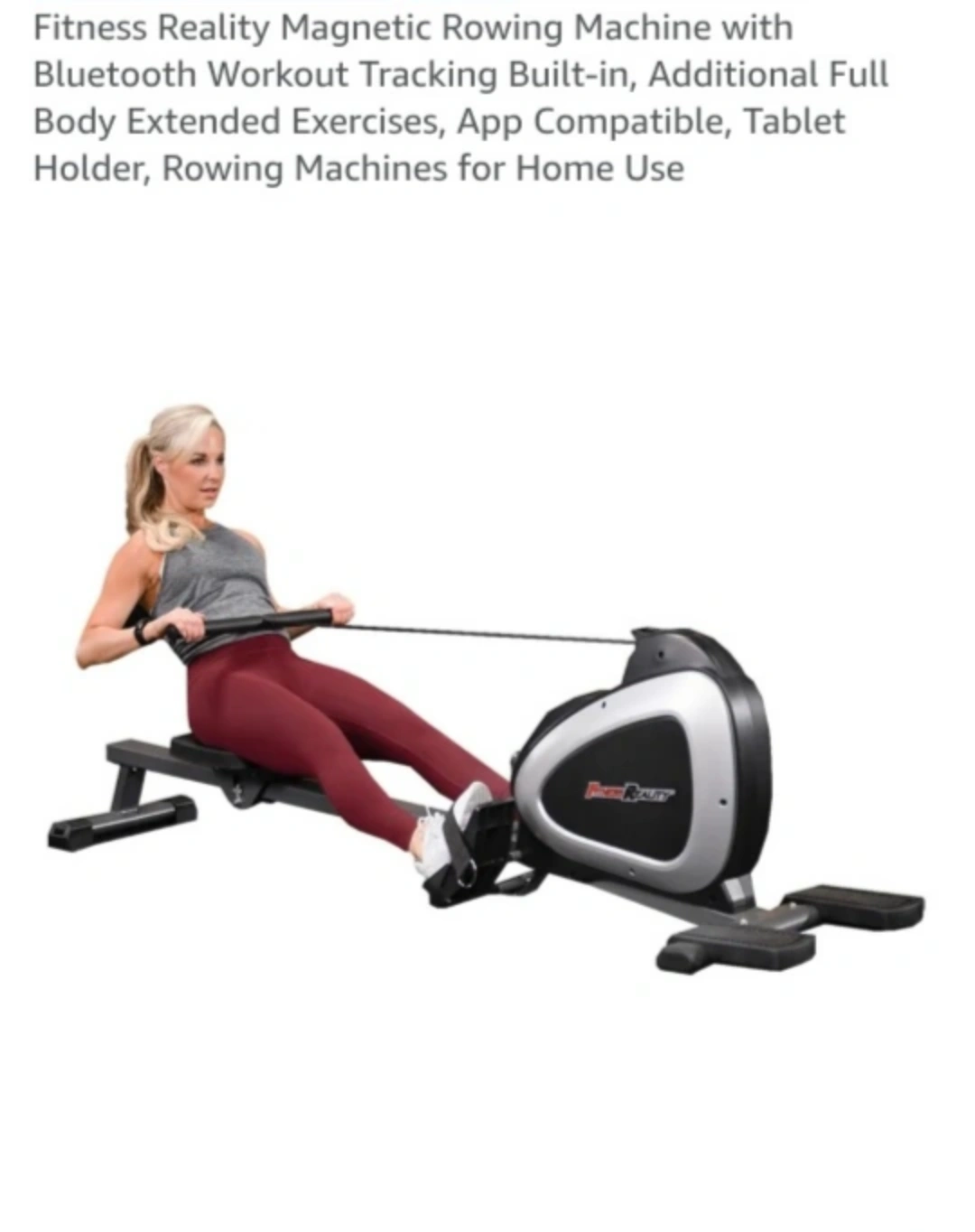 Original price: $500.Magnetic rowing machine. Bluetooth workout tracking. App compatible. Tablet holder. Additional full body exercises. Folds for easy storage. Transportation wheels. Large, comfortable contoured seat. Front stabilizer foot pads. Low impact, high intensity, smooth, quiet rowing mechanism. Used only 5 times.