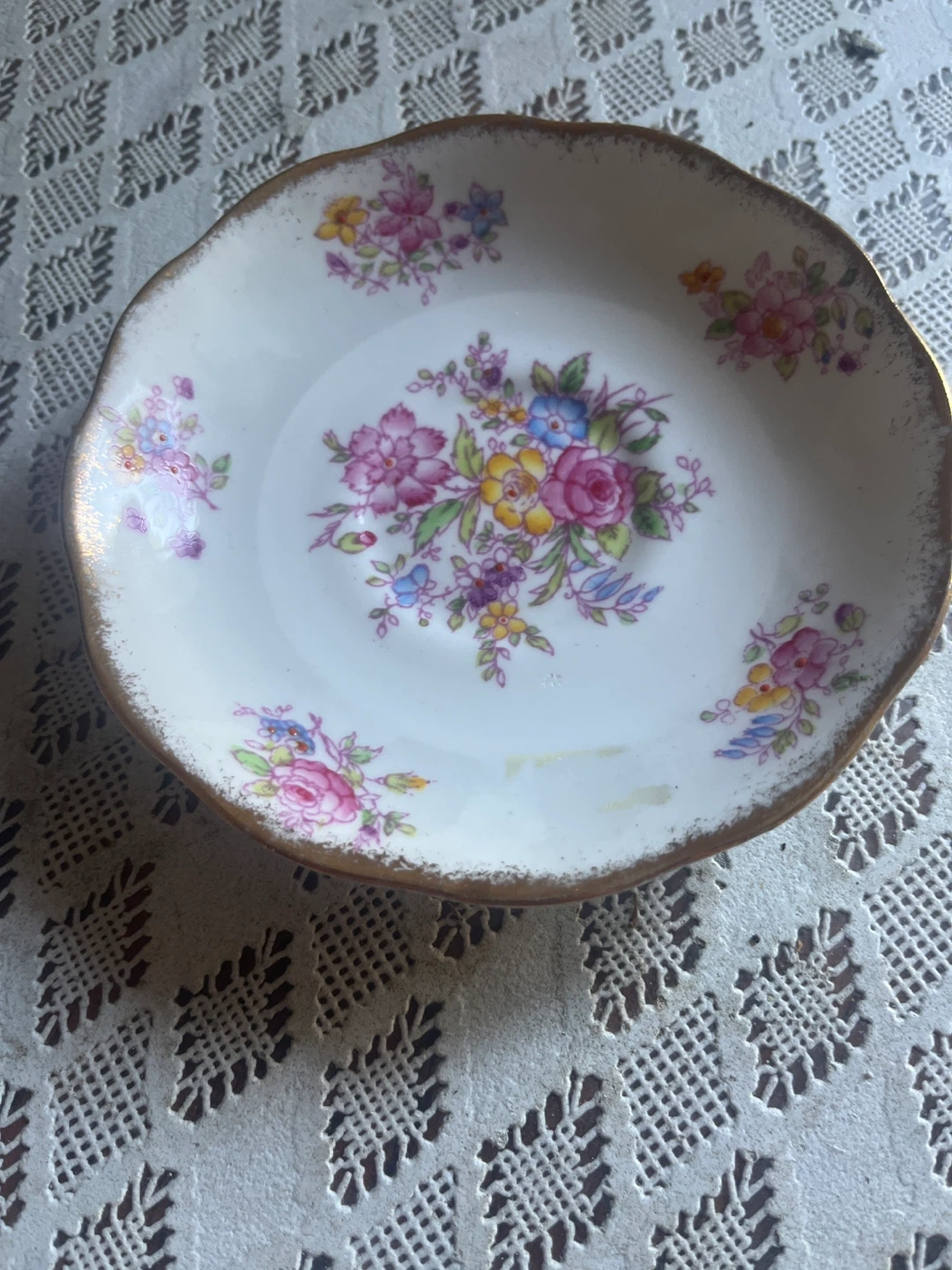 Royal Albert Georgina saucer in Great condition. The saucer has a beautiful floral design with a gold trim. Perfect for completing your tea set or as a decorative piece