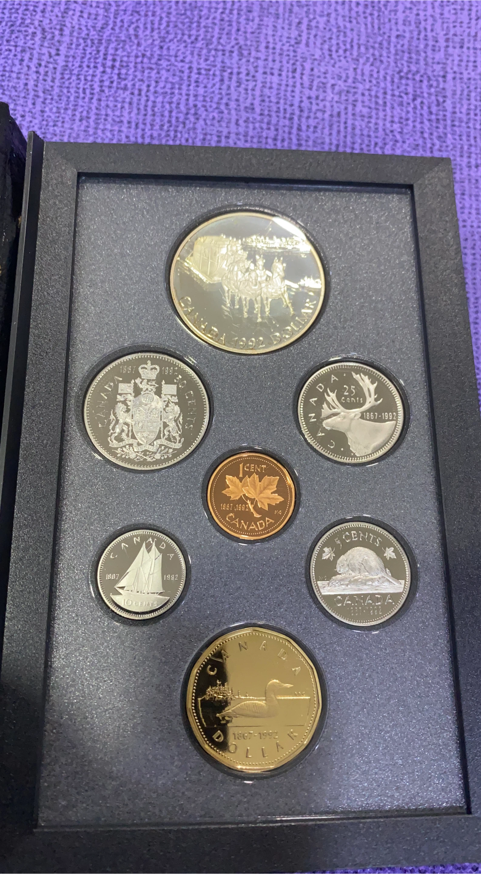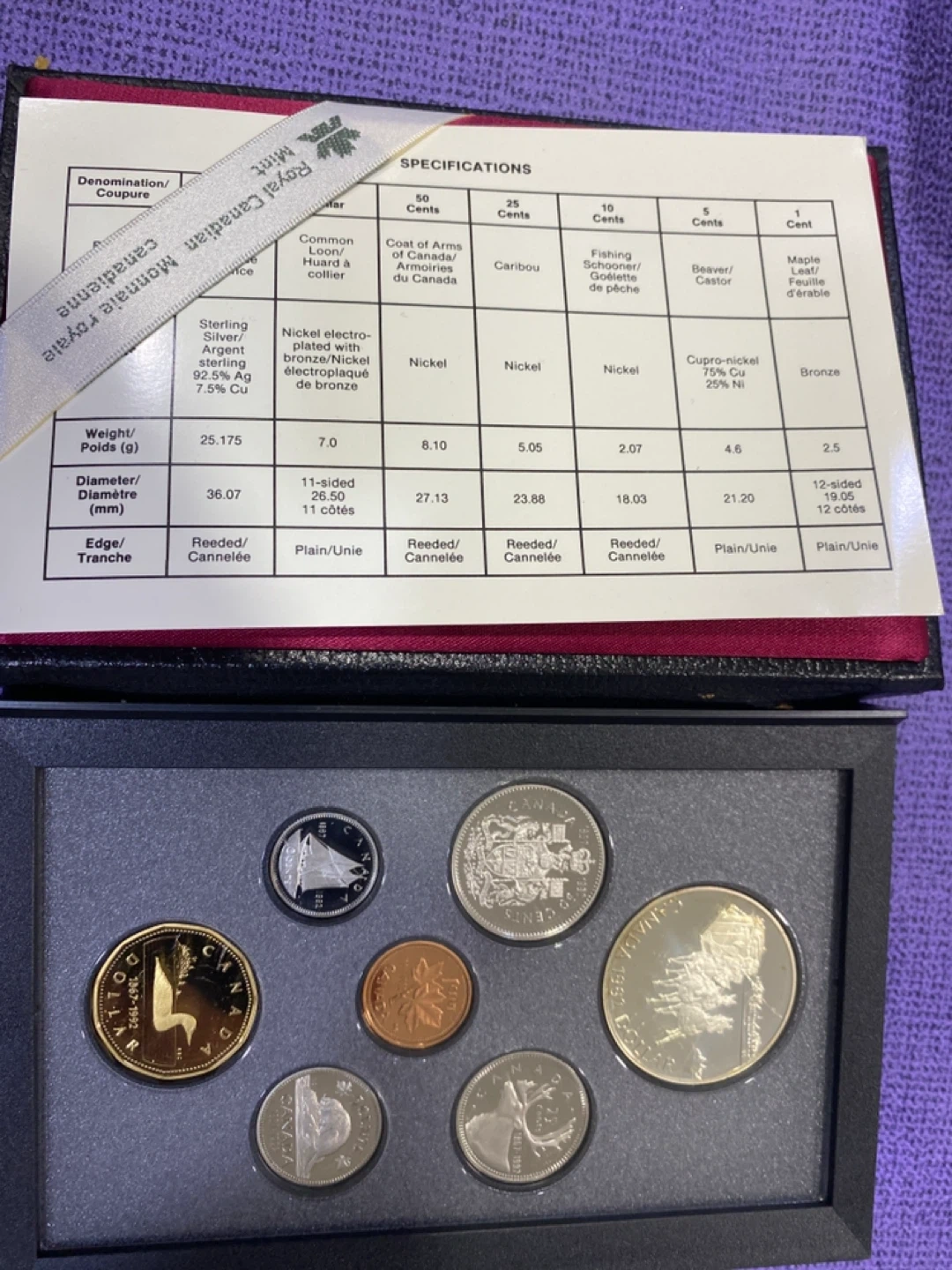 Selling a Royal Canadian Mint 1992 Proof Set! The set includes various denominations, from 1 cent to 1 dollar, each with its unique design and specifications. The coins are in excellent condition and come in the original box. A great addition to any coin collection!