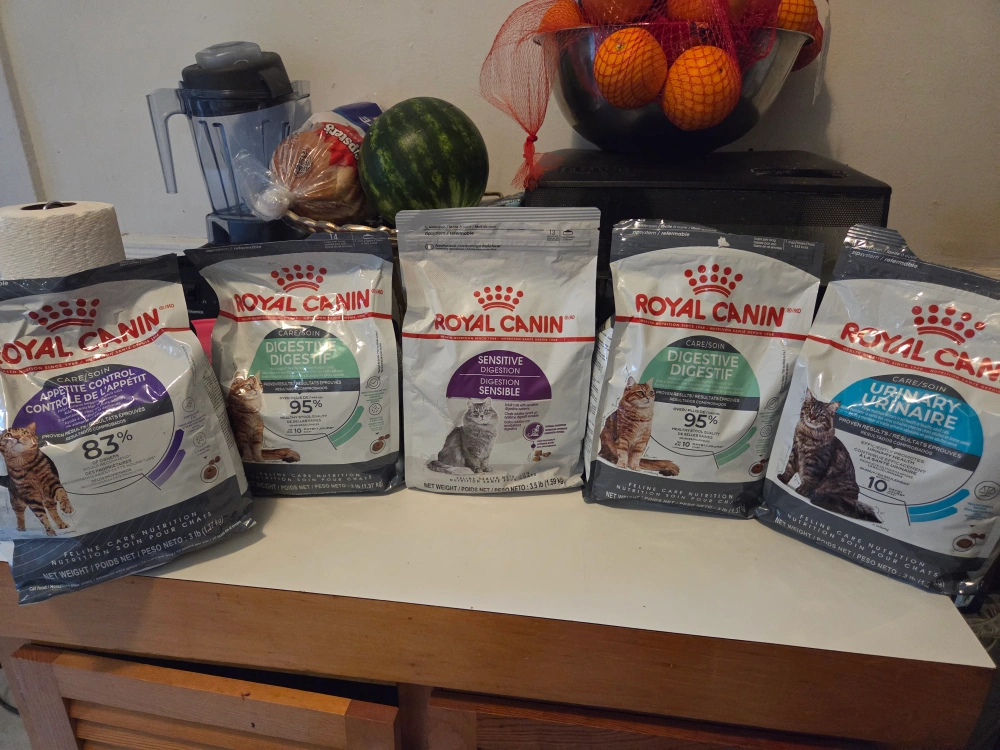 Selling a variety pack of Royal Canin cat food, including: - Appetite Control - Digestive Care - Sensitive Digestion - Urinary Care Each bag is carefully formulated to meet your cat's specific needs $20 each
